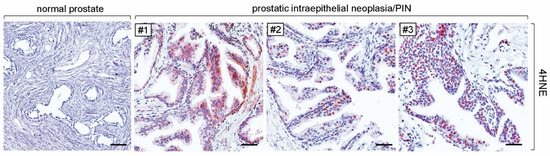 3.3. More Formations of 4HNE Adducts Were Present in Human Tissues of PIN and Prostate Cancer