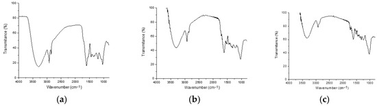 FTIR spectra of samples of (a) leaves, (b) fruits, and (c) stems of Lysiloma divaricata.