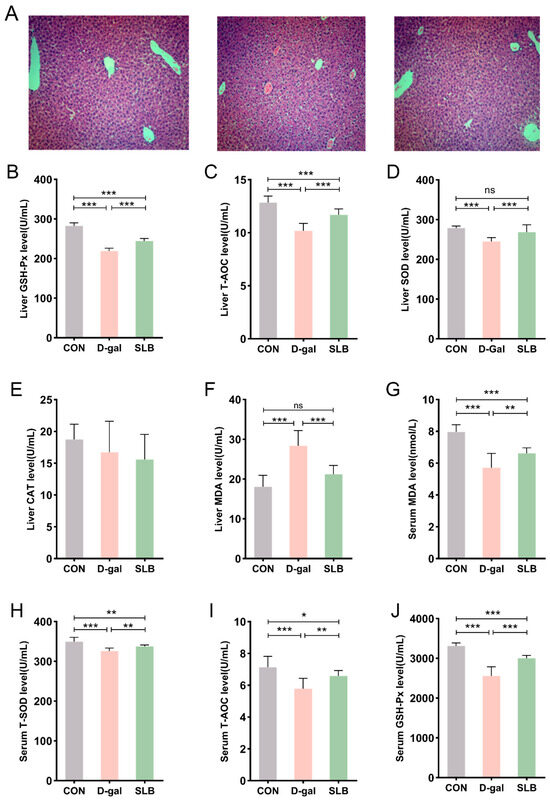 - Jin, D.X.; Jia, C.Y.; Yang, B.; Wu, Y.H.; Chen, L.; Liu, R.; Wu, M.G.; Yu, H.; Ge, Q.F. The ameliorative mechanism of Lactiplantibacillus plantarum NJAU-01 against d-galactose induced oxidative stress: A hepatic proteomics and gut microbiota analysis. Food Funct. 2024, 15, 6174–6188. [Google Scholar] [CrossRef]