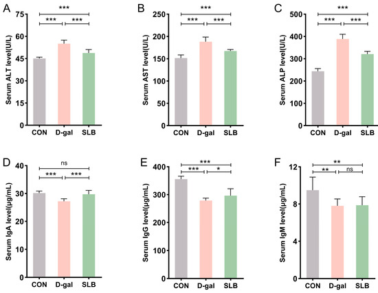 3.7. Effects of Silibinin on Oxidative Stress Indices in the Liver and Serum of Mice with D-Galactose-Induced Damage After Antibiotic Clearance