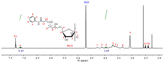 The calculation of DS was based on the 1H NMR spectroscopy in accordance with established literature methods [26]. The results were derived from the ratio of the integral values associated with hydrogen protons on phenyl, pyridyl, and thiazolyl groups to those of the hydrogen protons (H4) present in the anhydrofructose units (AFU) of the inulin backbone. The equation is shown as follows:
