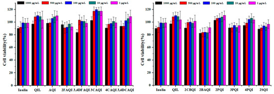Cytotoxicities of inulin, QIL, and QIL derivatives on L929 cell lines according to the CCK-8 test.
