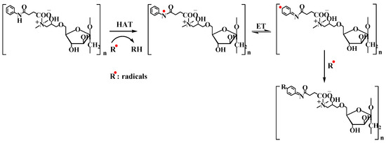 In summary, we concluded that the aromatic amide and quaternary ammonium salt can synergistically enhance the antioxidant activity of inulin. These derivatives achieved high antioxidant activity by means of HAT and ET mechanisms, and/or by chelating metal ions, especially showing significant effects in scavenging hydroxyl radicals. Hence, the series of inulin derivatives bearing quaternary ammonium salt and aromatic amide in this study are promising developed as antioxidant materials in biomedical materials, functional foods, and pharmaceutical applications.