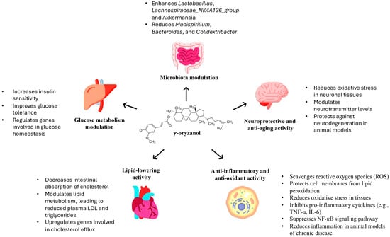 Main targets and biological effects exerted by γ-oryzanol.