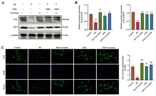 3.5. Effects of SMS on the Nrf2-HO-1 Pathway in Heat-Stressed Rat H9c2 Cardiomyocytes