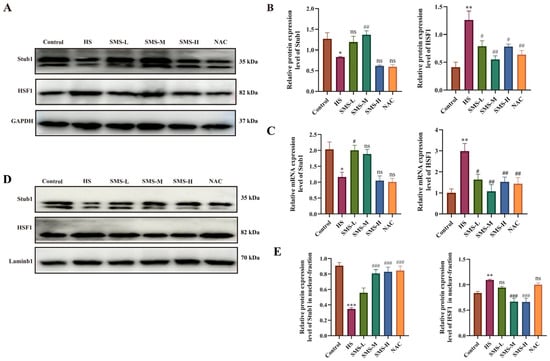 3.8. Effects of SMS on the Stub1-HSF1 Pathway in Heat-Stressed Rat Myocardium