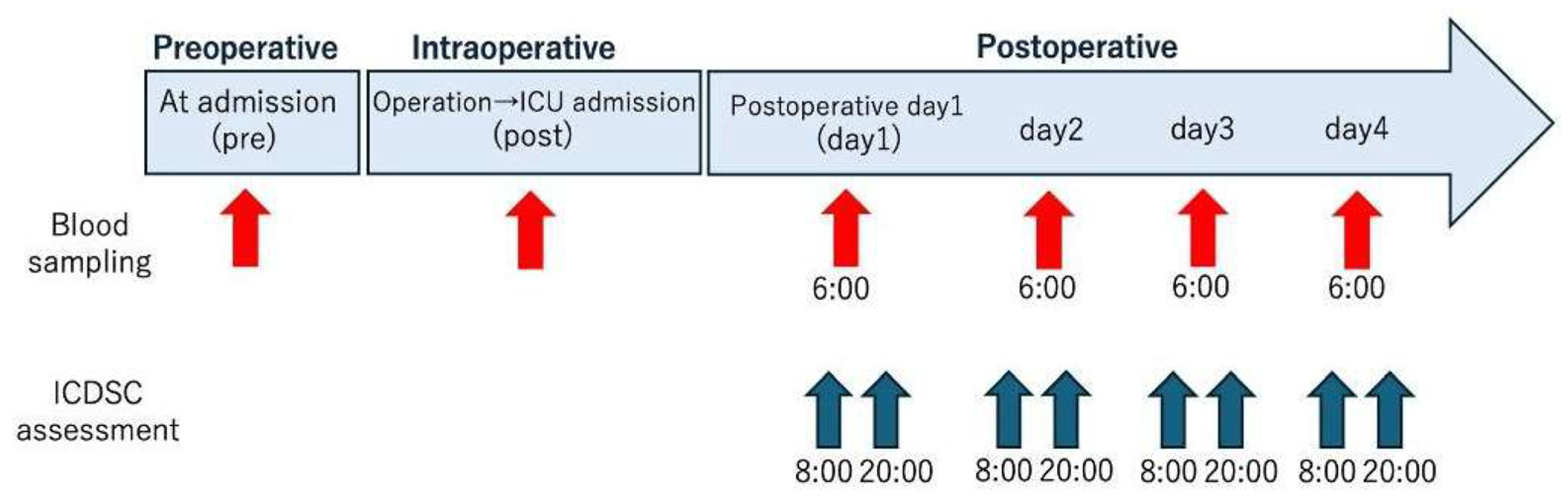 - Diao, Y.; Zhang, L.; Xu, Y.; Li, W.; Chen, R.; Wang, H. Predictive value of CAM-ICU and ICDSC for postoperative delirium: A meta-analysis. Nurs. Crit. Care 2024, 29, 1224–1235. [Google Scholar] [CrossRef] [PubMed]