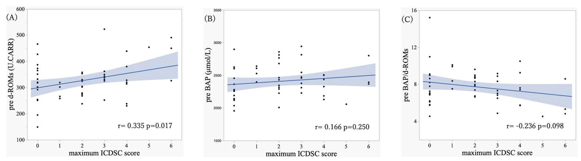 3.4. Association Between Oxidative Stress Markers and ICDSC Scores