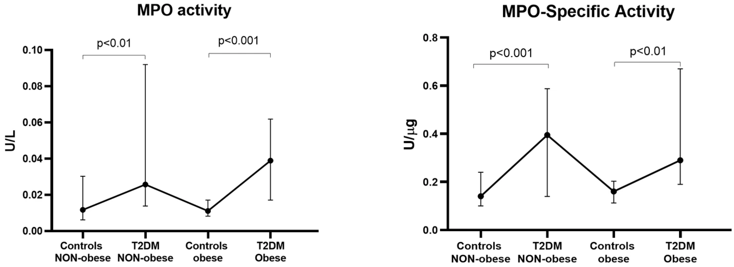Myeloperoxidase (MPO) Enzymatic Activity, but Not Its Protein Concentration, Is Associated with the Risk of Type 2 Diabetes in Females, Regardless of Obesity Status