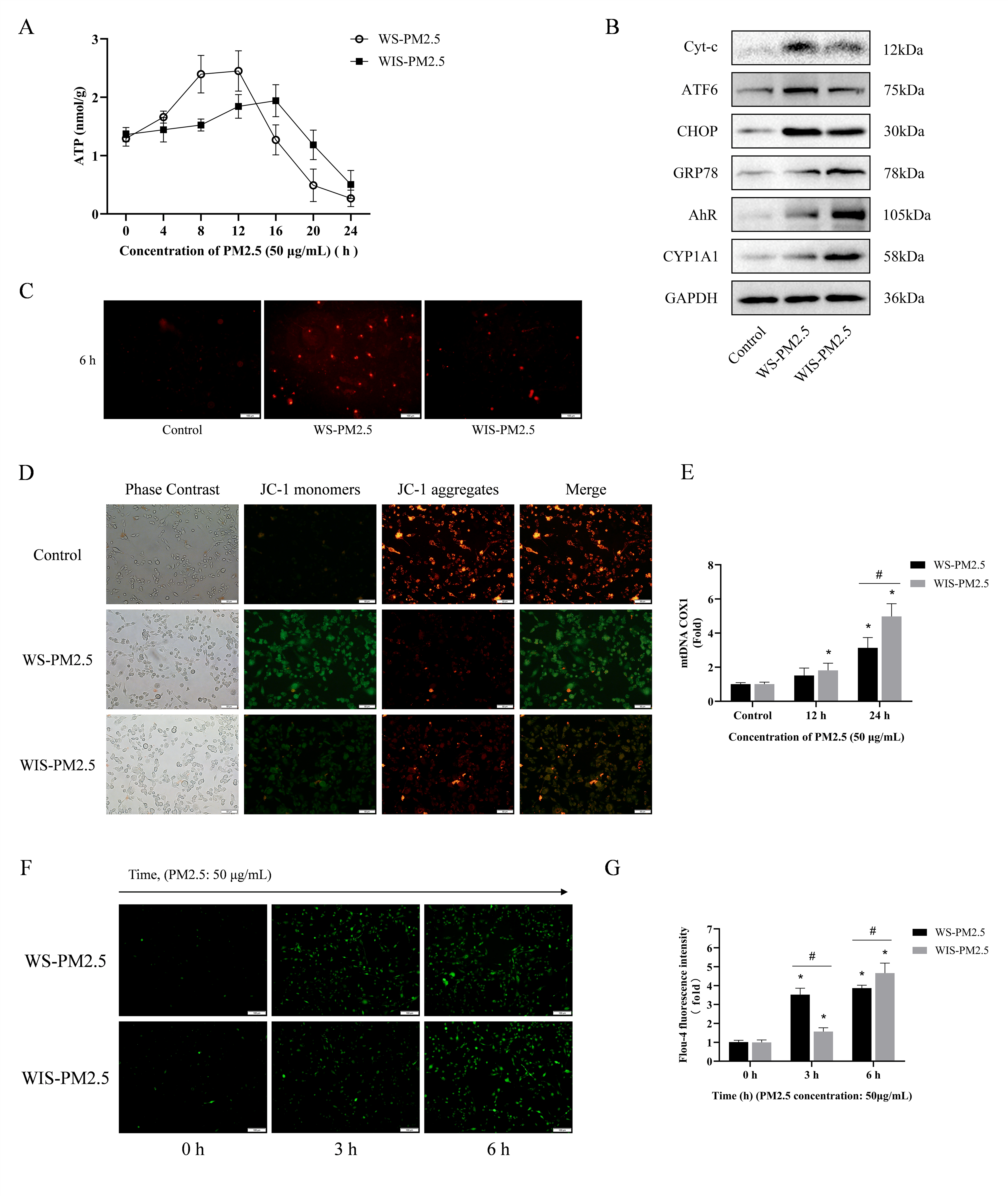 3.4. WS-PM2.5 Induced Rapid Responses in Mitochondrial Dysfunction and Endoplasmic Reticulum Ca2+ Release