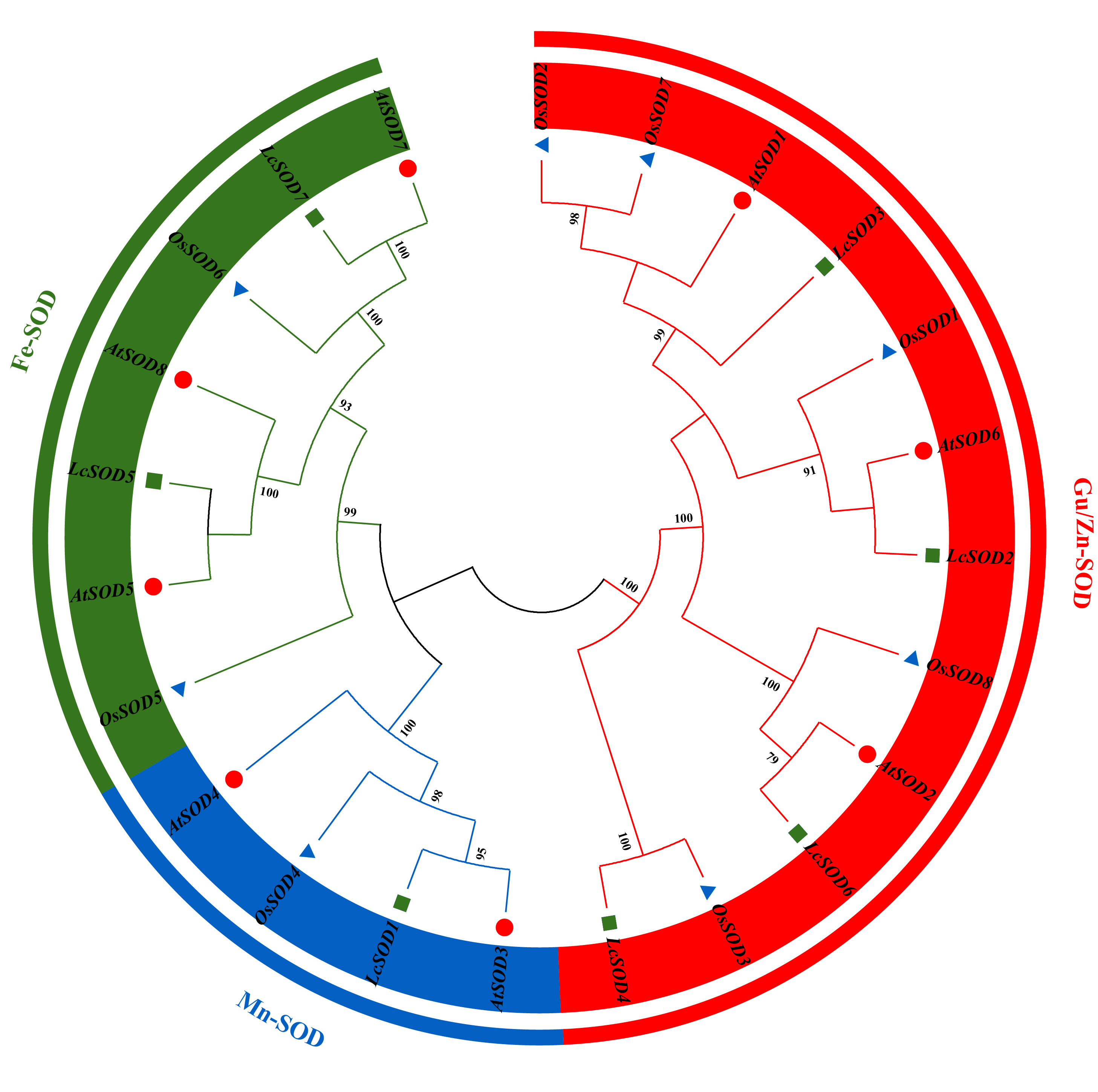 - Lin, Y.-L.; Lai, Z.-X. Superoxide dismutase multigene family in longan somatic embryos: A comparison of CuZn-SOD, Fe-SOD, and Mn-SOD gene structure, splicing, phylogeny, and expression. Mol. Breed. 2013, 32, 595–615. [Google Scholar] [CrossRef]