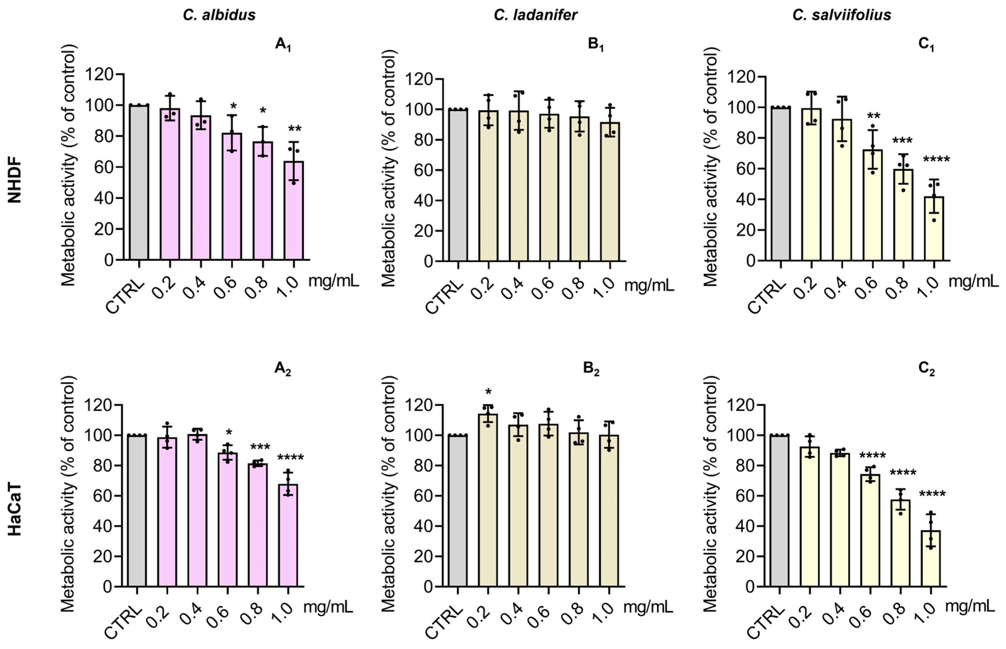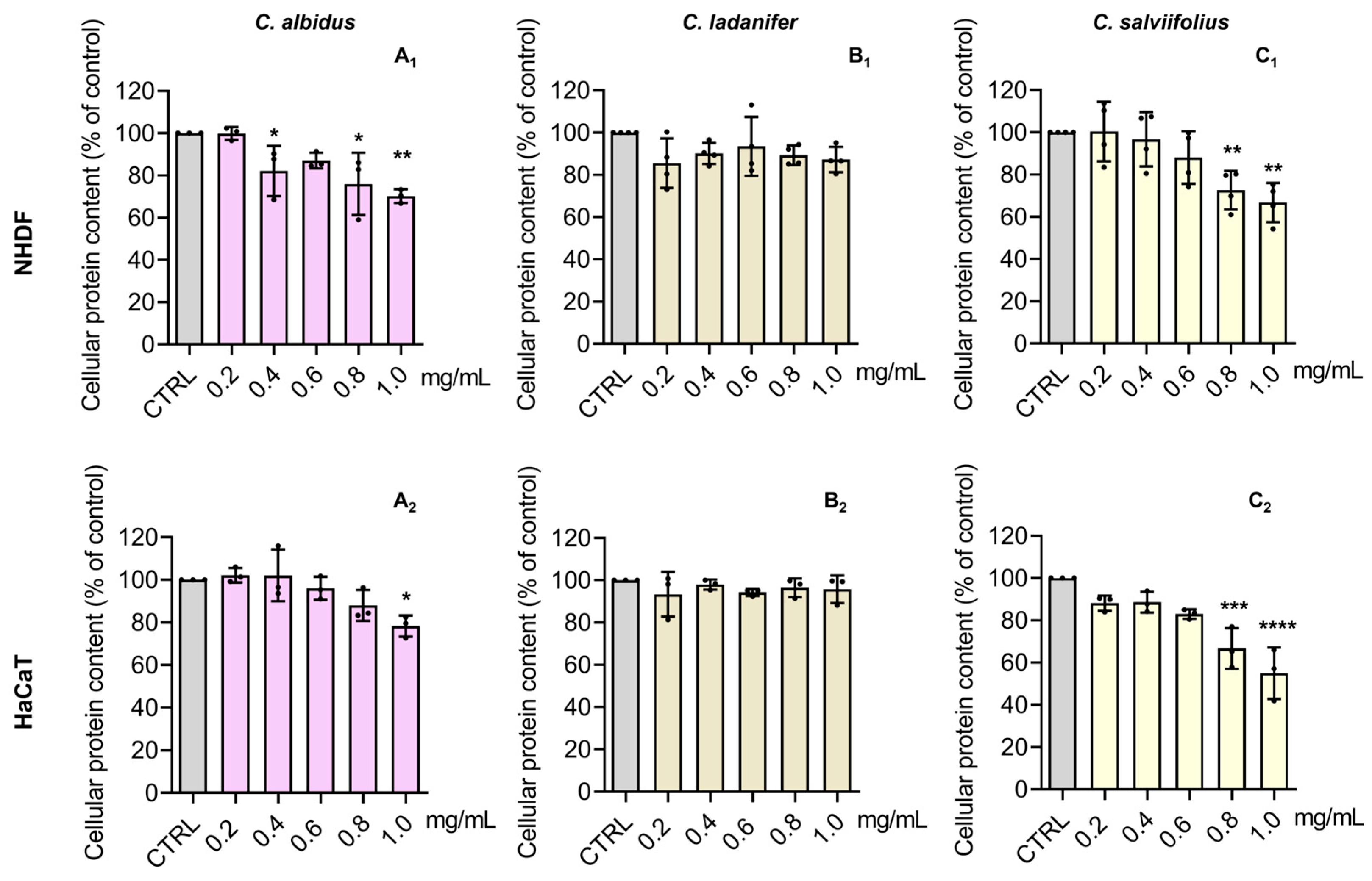 APA StyleMarques, M. P., Landim, E., Varela, C., da Costa, R. M. F., Marques, J., Batista de Carvalho, L. A. E., Silva, A., Cruz, M. T., André, R., Rijo, P., Dias, M. I., Carvalho, A., Oliveira, P. J., & Cabral, C. (2026). Targeting Skin Aging Hallmarks In Vitro: Antioxidant, Anti-Inflammatory, and Anti-Senescence Effects of Phenolic-Rich Extracts from Cistus L. Species. Antioxidants, 15(1), 149. https://doi.org/10.3390/antiox15010149