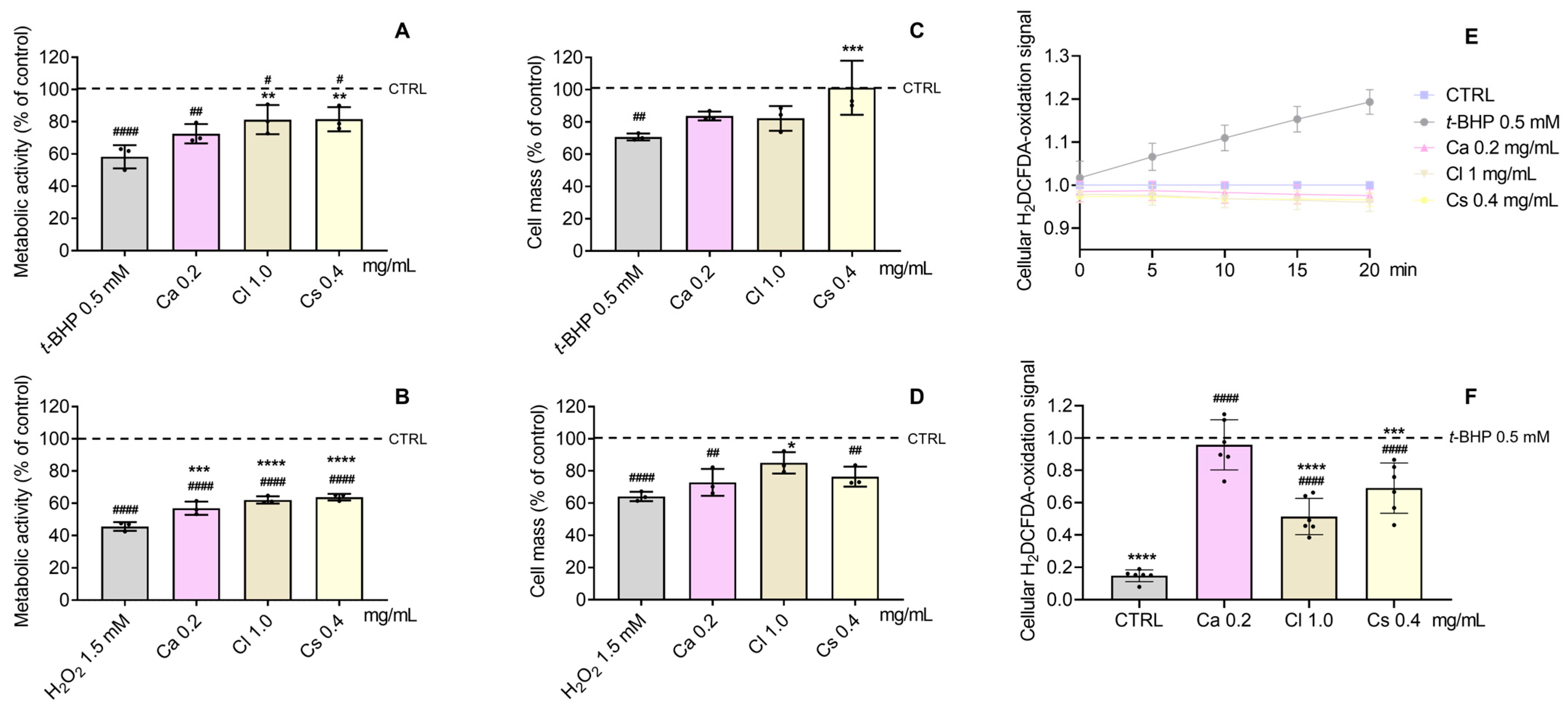 | Cl (1.0 mg/mL) | n.a. | 27.75 ± 4.10 **** | 64.16 ± 8.18 |