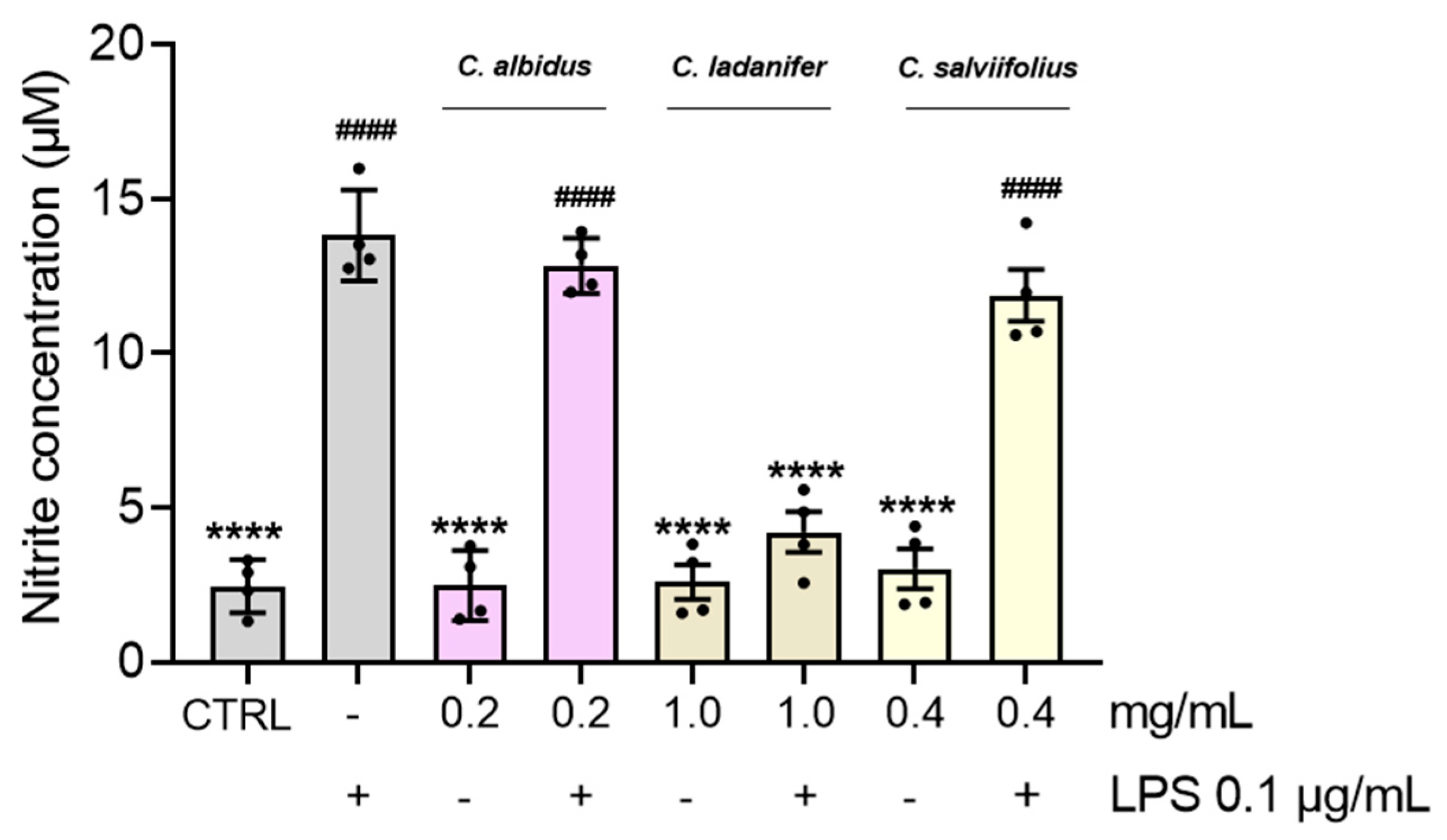 3.6. Anti-Inflammatory Effects Assessed by Nitrite Quantification