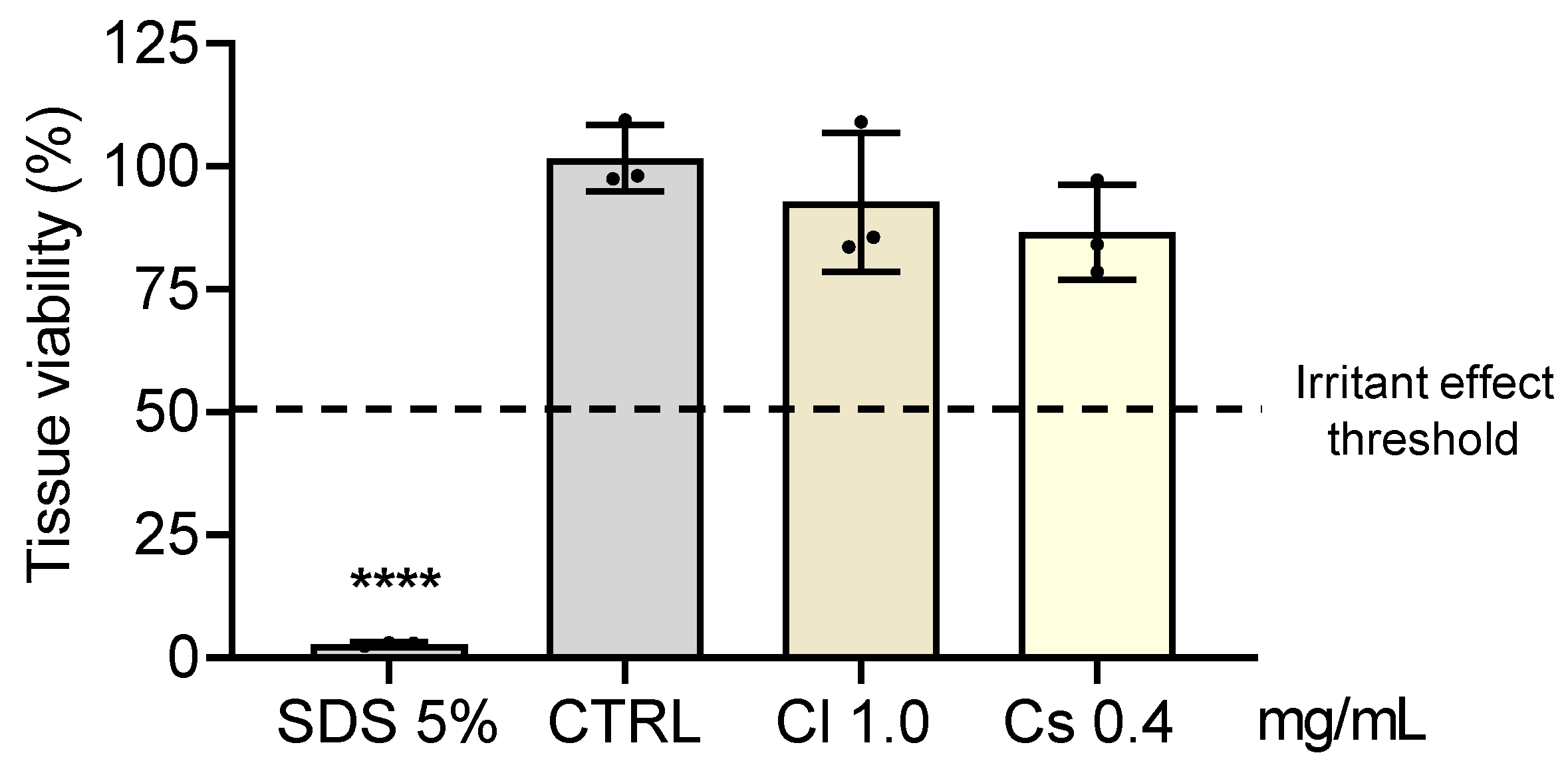 | Cs (0.4 mg/mL) | 94.11 ± 7.98 | 96.80 ± 2.45 | 75.72 ± 8.82 |