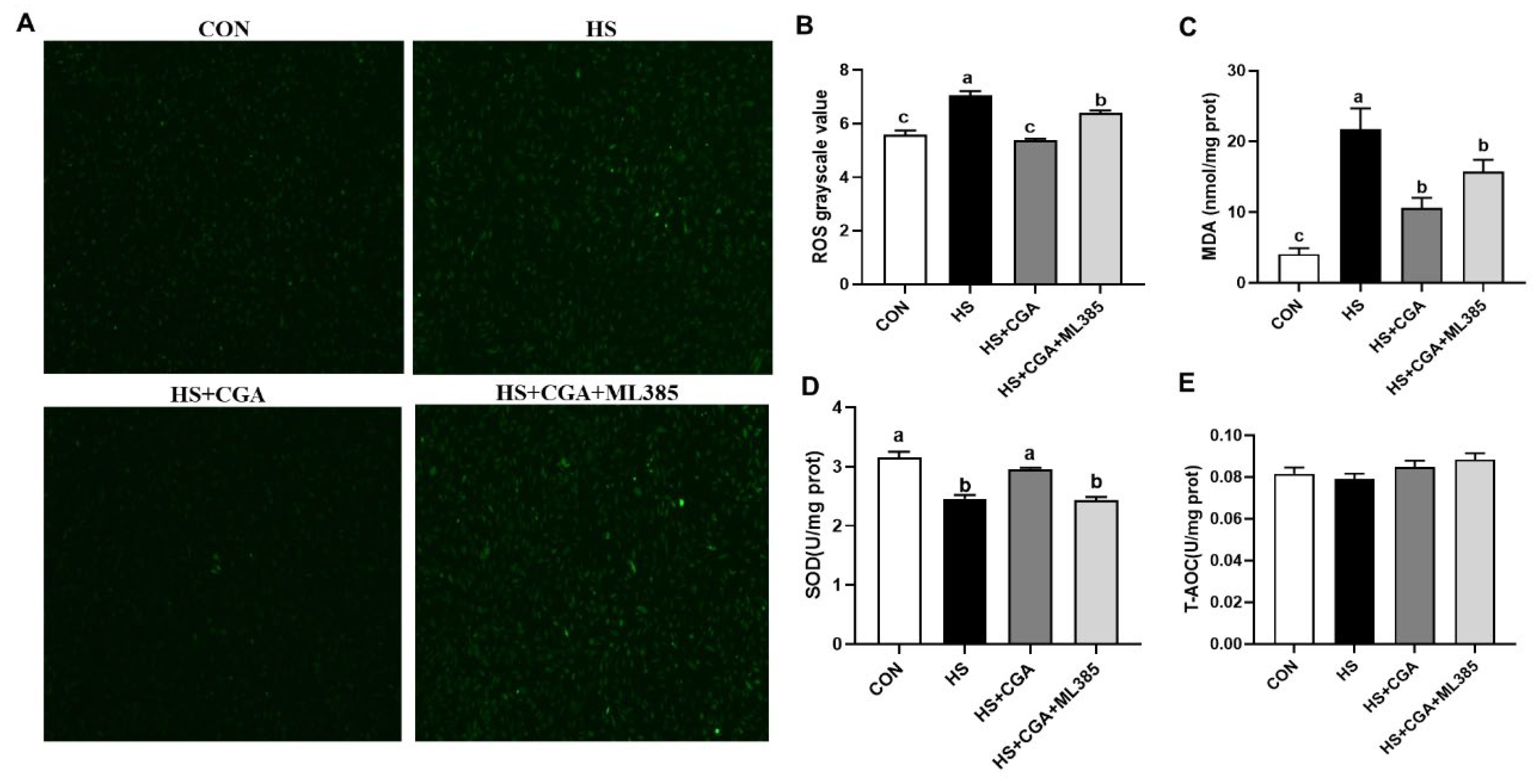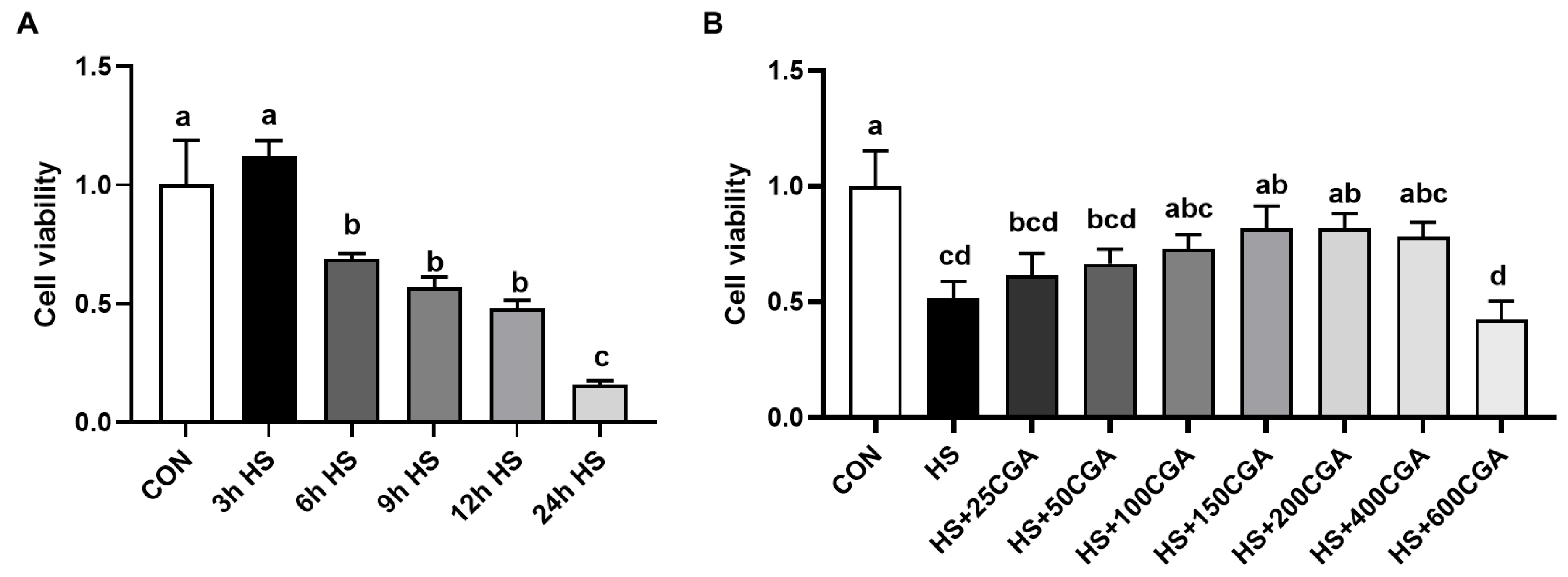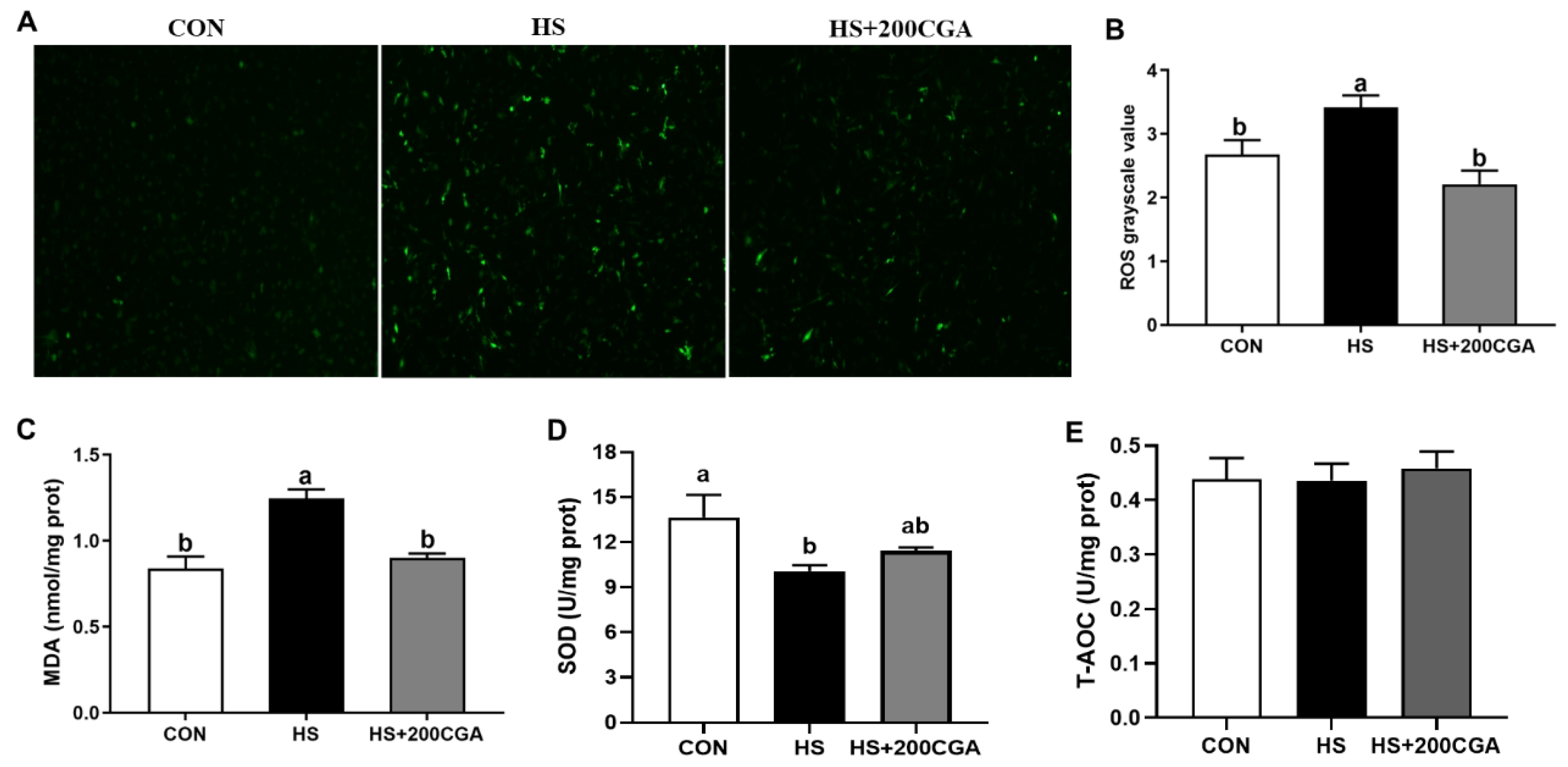 3.5. CGA Enhances the Antioxidant Capacity in HS-Challenged Rabbit IECs (In Vitro)