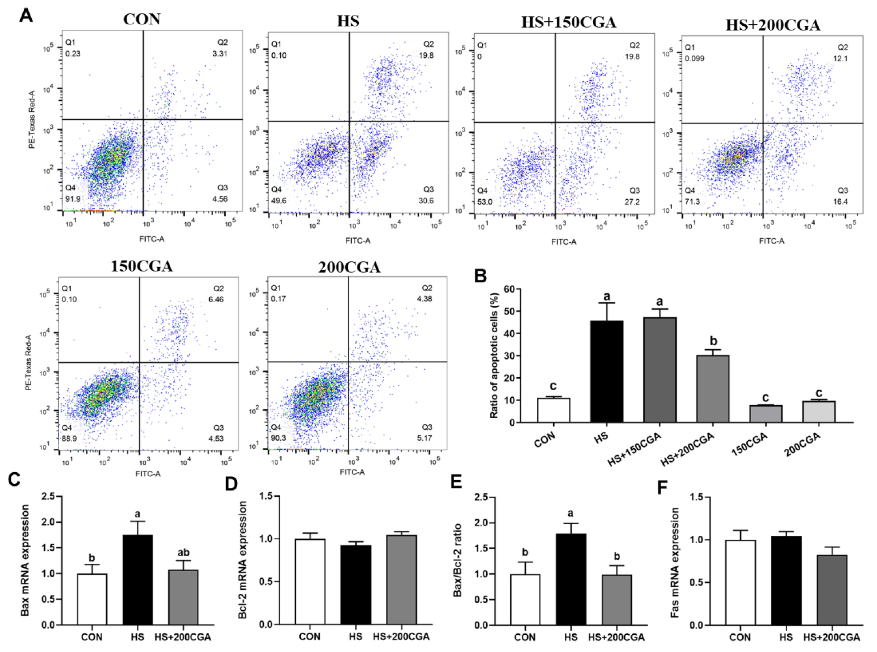3.4. CGA Alleviates HS-Induced Cell Apoptosis in Rabbit IECs (In Vitro)