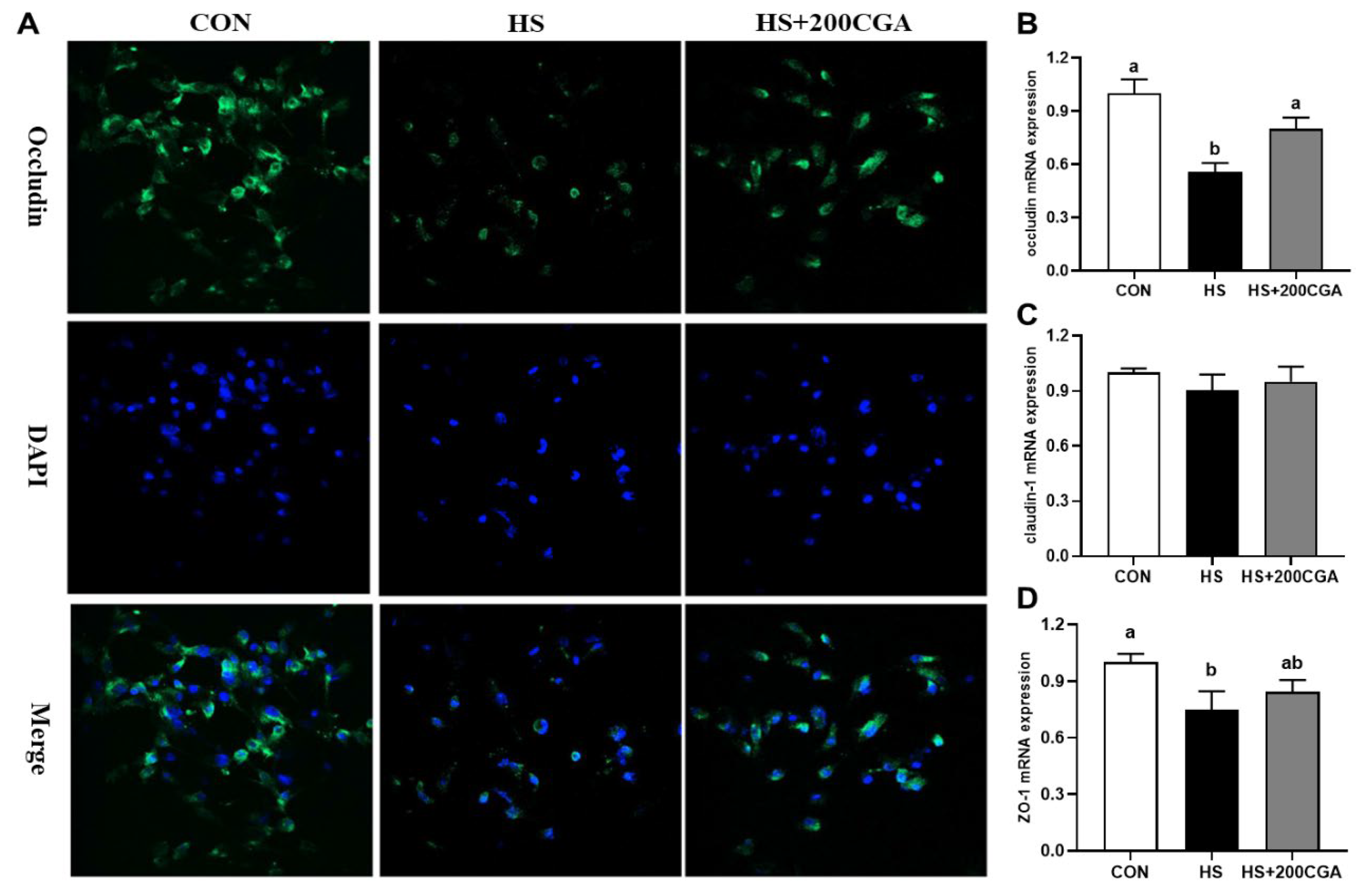3.6. CGA Promotes the Expression of Tight Junction-Related Protein in HS-Challenged Rabbit IECs (In Vitro)
