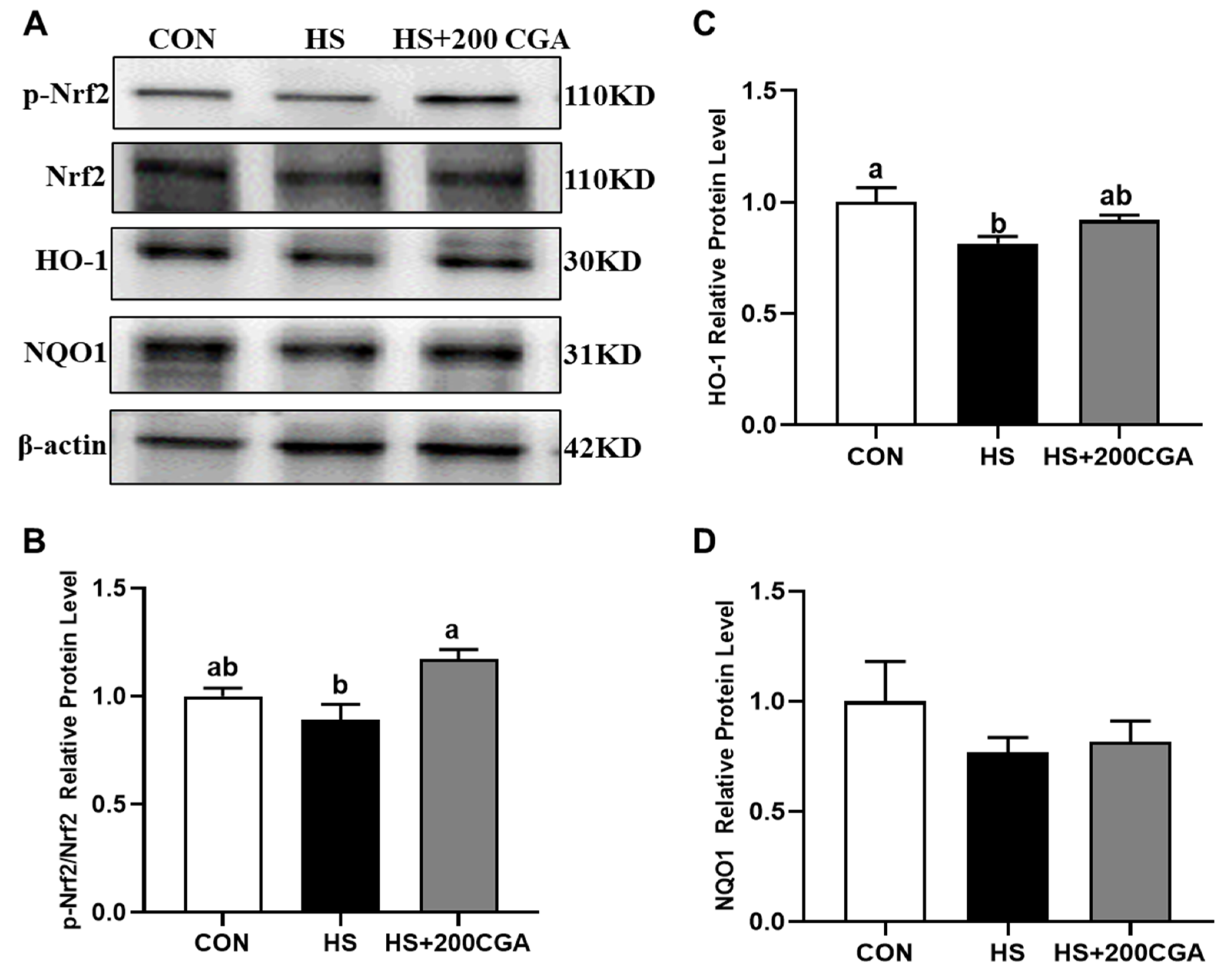 3.7. CGA Promotes the Activation of Nrf2 Signaling in HS-Challenged Rabbit IECs (In Vitro)