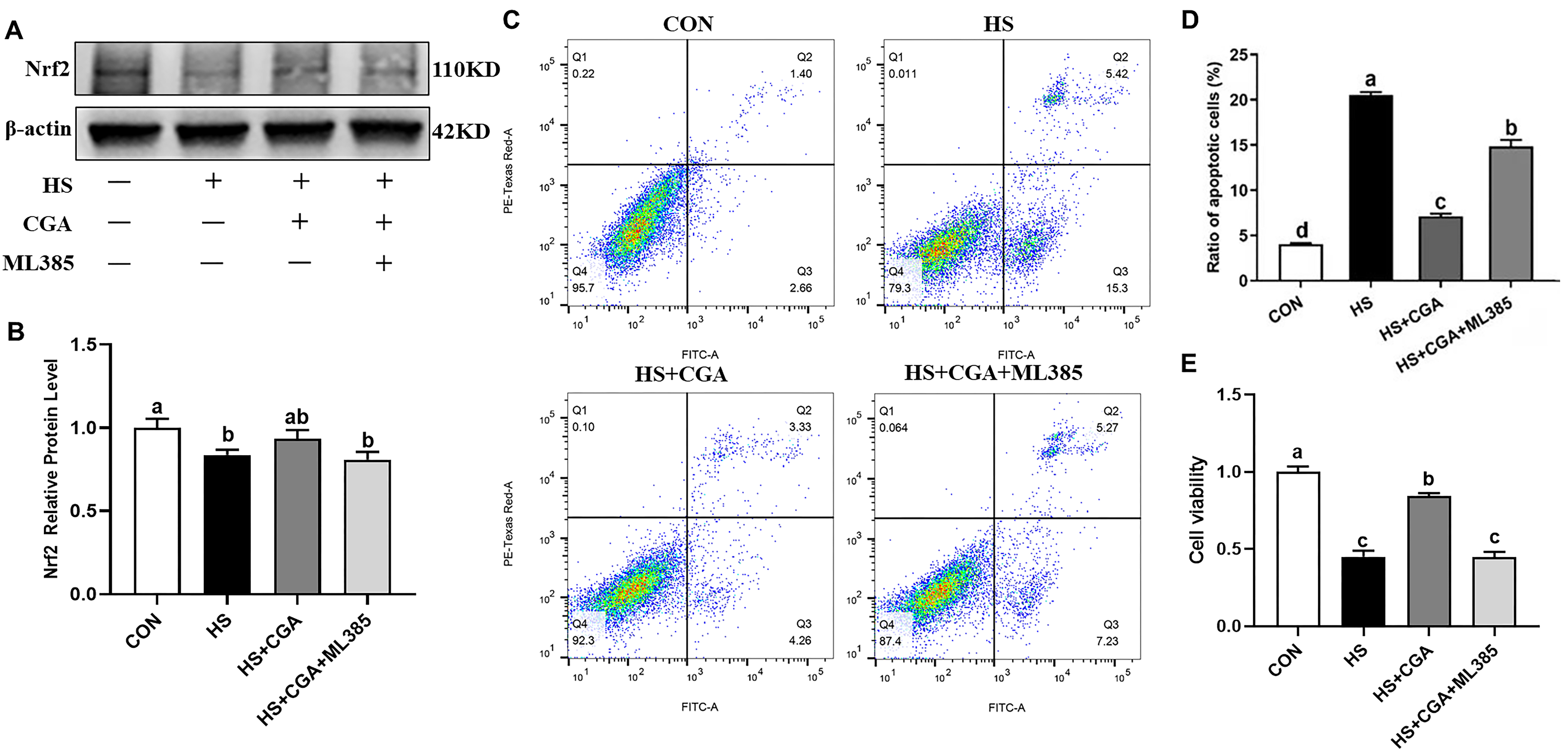 3.8. CGA Attenuates HS-Induced Oxidative Damage in Rabbit IECs via Nrf2 Signaling (In Vitro)