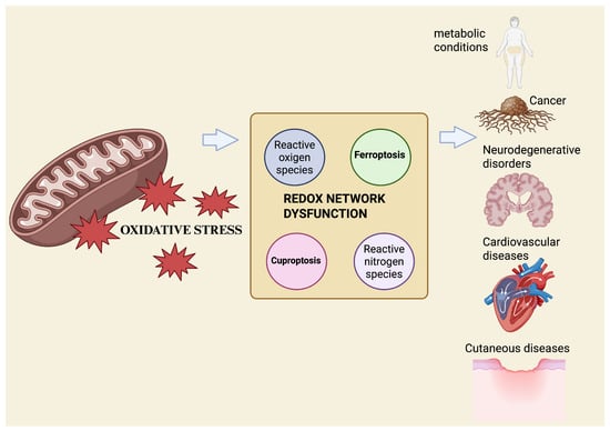 Redox biology has entered a new era in which OS is no longer viewed as a nonspecific marker of damage but as an organized network that integrates metabolism, immunity, and metal homeostasis. Ferroptosis and cuproptosis exemplify how dysregulated iron and copper fluxes convert adaptive redox signaling into regulated cell death, providing a mechanistic bridge between metabolic dysfunction, inflammation, and tissue degeneration. The convergence of these pathways across endocrine, dermatologic, cardiovascular, and neurologic systems underscores the systemic nature of redox miscommunication and its central role in human disease.