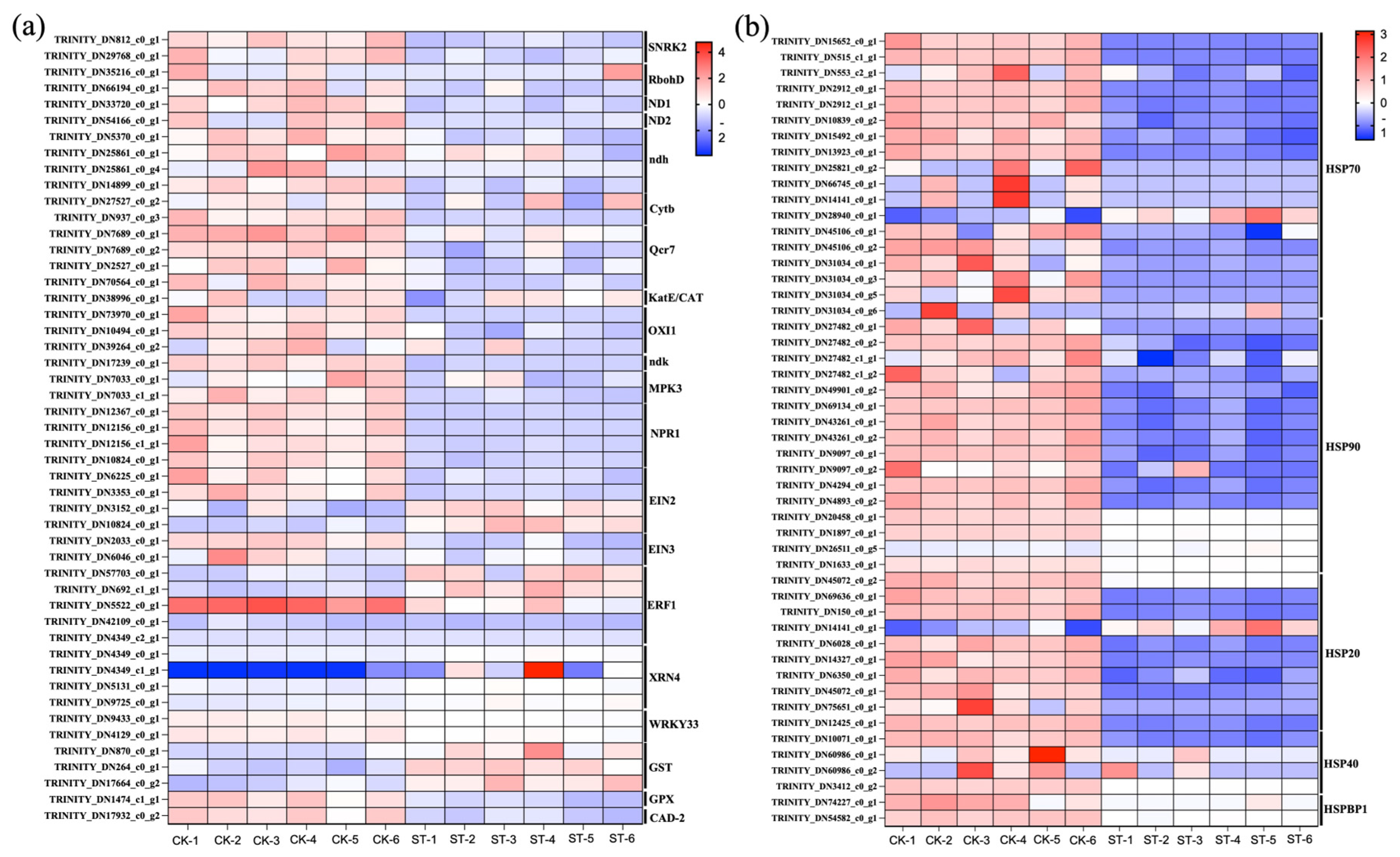 - Yan, J.; Yu, L.; Xuan, J.; Lu, Y.; Lu, S.; Zhu, W. De novo transcriptome sequencing and gene expression profiling of spinach (Spinacia oleracea L.) leaves under heat stress. Sci. Rep. 2016, 6, 19473. [Google Scholar] [CrossRef] [PubMed]