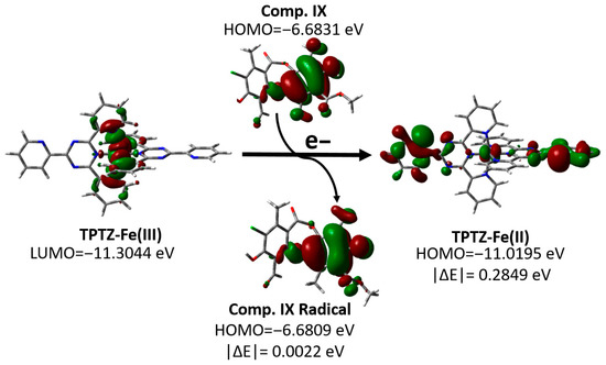 Changes in the molecular orbitals of the FRAP reagent and compound IX according to the proposed SET mechanism.