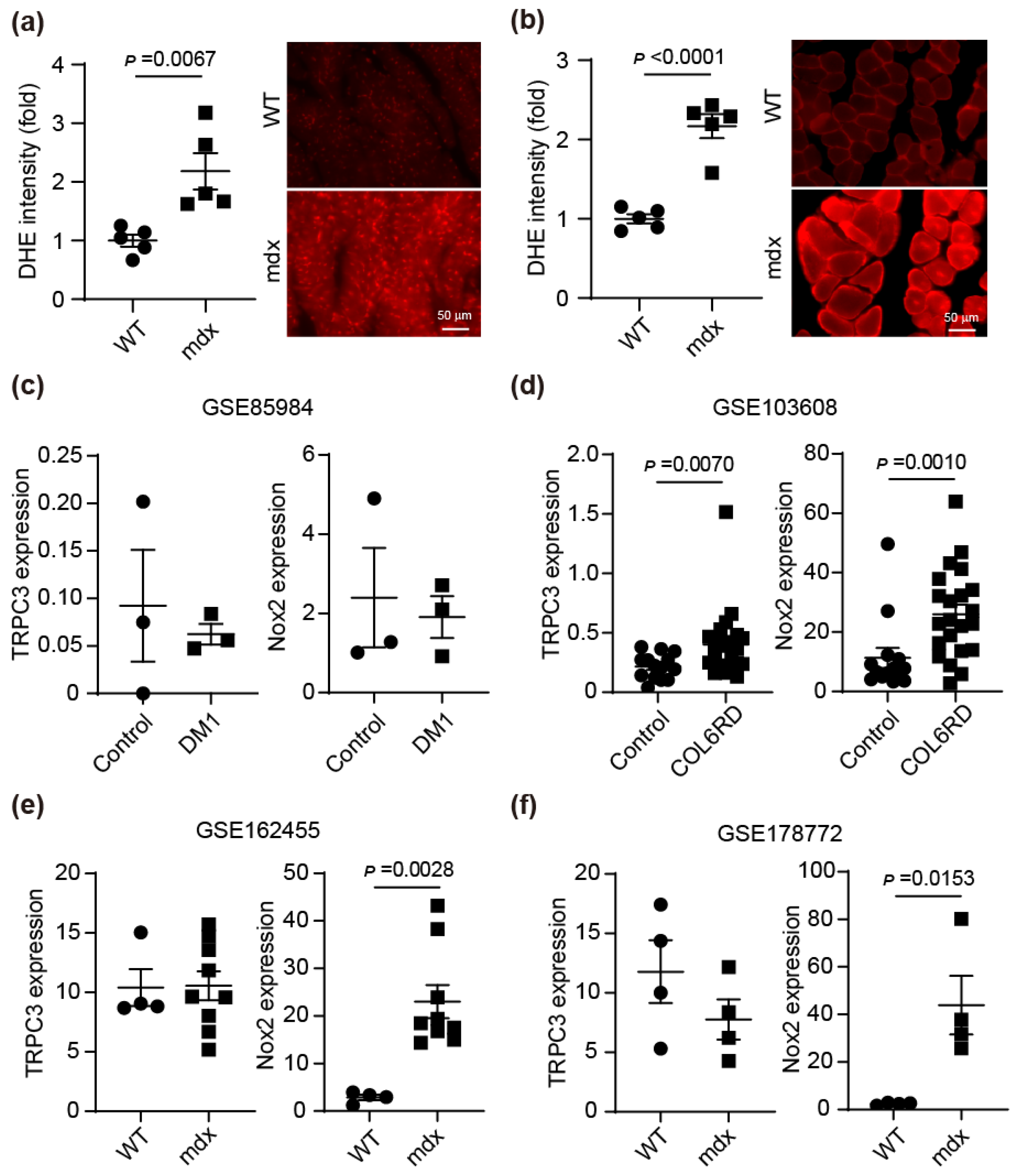 - Whitehead, N.P.; Yeung, E.W.; Froehner, S.C.; Allen, D.G. Skeletal muscle NADPH oxidase is increased and triggers stretch-induced damage in the mdx mouse. PLoS ONE 2010, 5, e15354. [Google Scholar] [CrossRef] [PubMed]