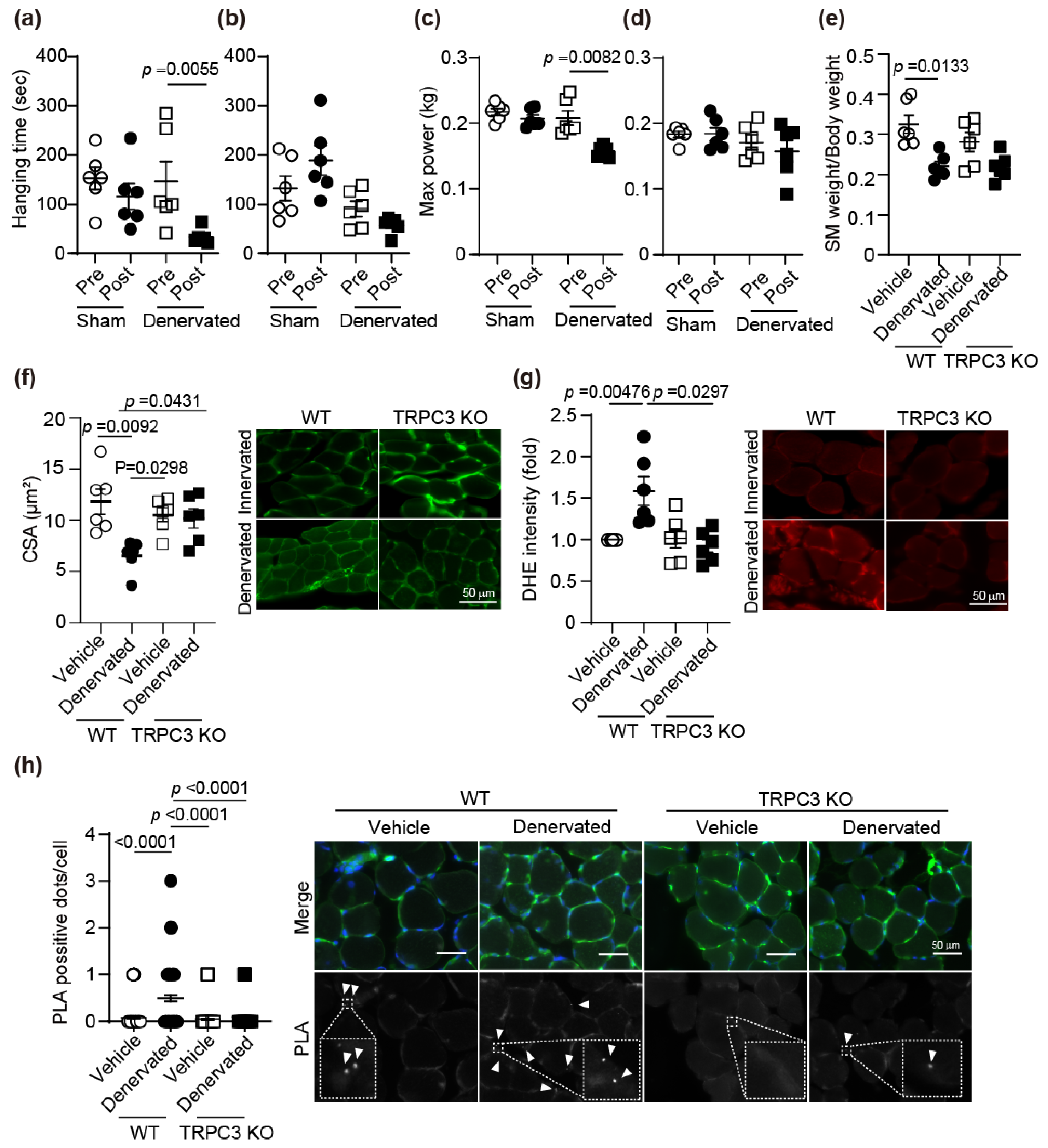 3.2. TRPC3 Deletion Attenuates Denervation-Induced Soleus Atrophy