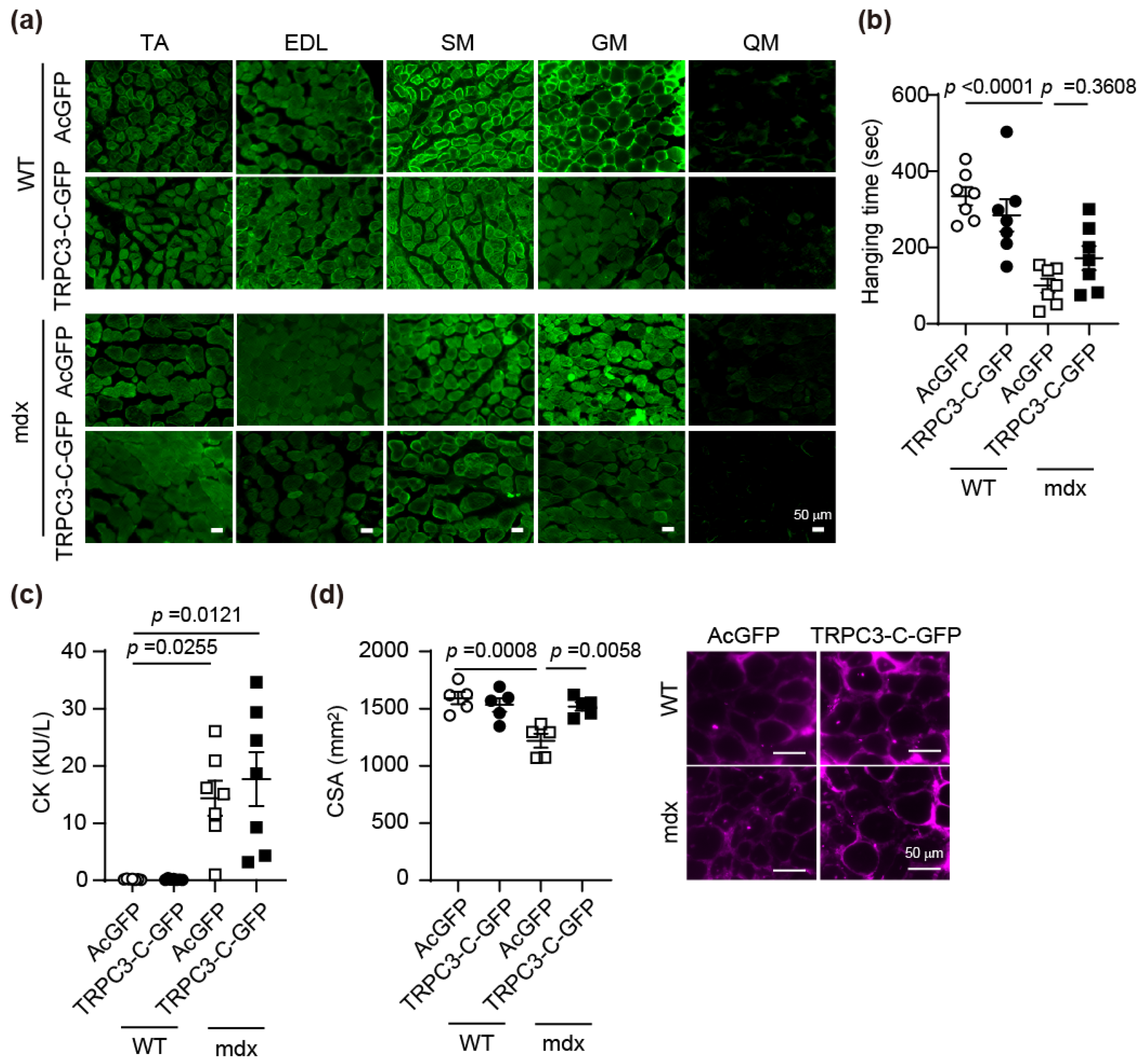 3.5. AAV-Mediated TRPC3 C-Terminal Peptide Expression Suppresses Muscle Atrophy Locally