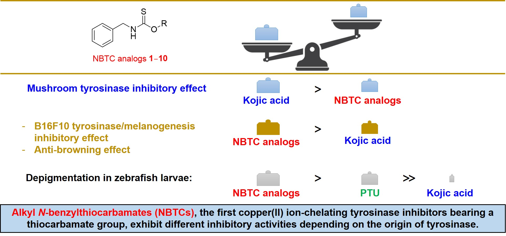 Jung HJ, Park HS, Jeong Y, Kim GY, Lee H, Park HS, Kim HJ, Ju H, Kang H, Park Y, et al. Alkyl N-Benzylthiocarbamates, the First Copper(II) Ion-Chelating Tyrosinase Inhibitors with a Thiocarbamate Group and ROS-Scavenging Activity, Exhibit Different Inhibitory Activities Depending on the Origin of Tyrosinase. Antioxidants. 2026; 15(1):39. https://doi.org/10.3390/antiox15010039