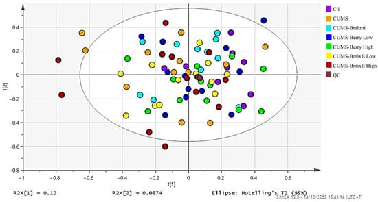 Conceptualization, K.P., P.T. and K.I.; Brahmi, mixed Thai berry, and combined extracts preparation, K.P., W.K. and P.R.; Animal study, S.N.-T., P.R., P.J., W.W. and K.P.; Metabolomics experiments and analysis, K.P., N.N., W.C., N.C., K.I. and P.T.; Visualization, K.P., W.C. and N.C.; Writing—Original Draft Preparation, K.P.; Writing—Review & Editing, P.T.; Project administration, K.P., P.T. and K.I.; Supervision, P.T. and K.I., Funding acquisition, P.T. and K.I. All authors have read and agreed to the published version of the manuscript.