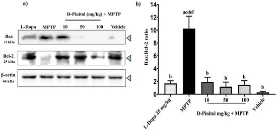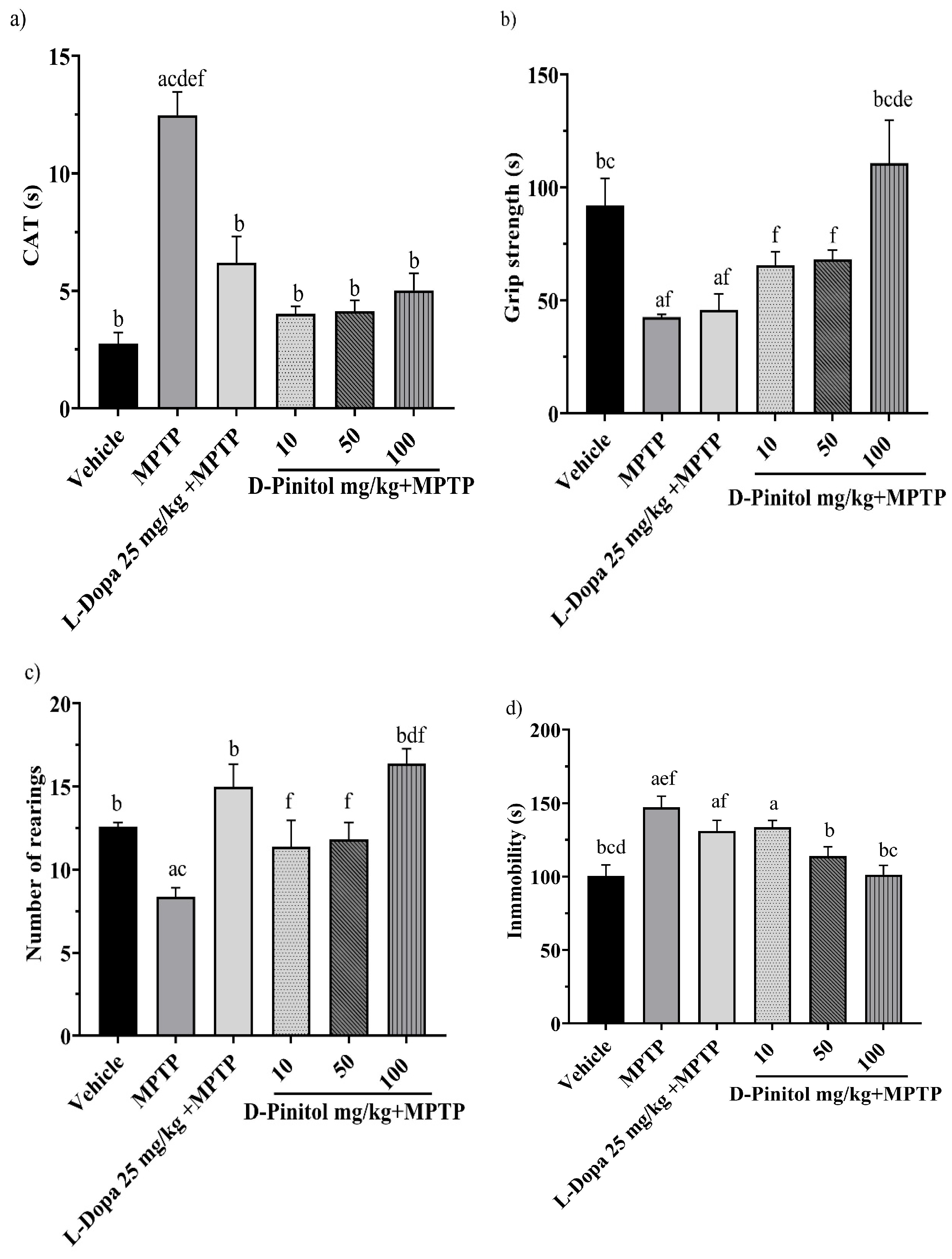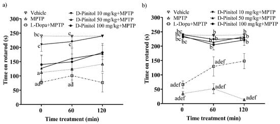 3.3. D-Pinitol Protects Mice from Motor Impairment Due to MPTP-Induced Parkinsonism