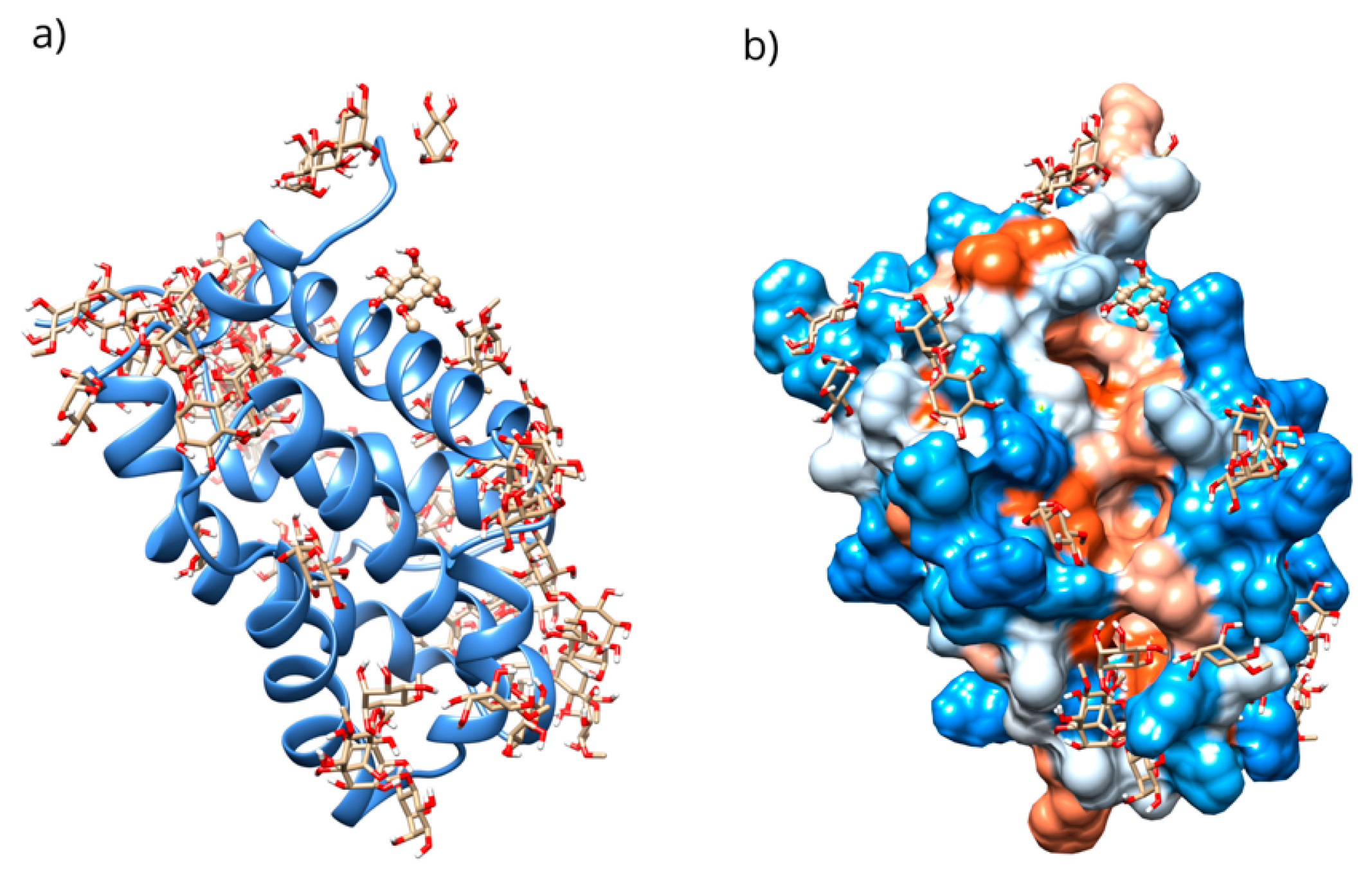 - Pettersen, E.F.; Goddard, T.D.; Huang, C.C.; Couch, G.S.; Greenblatt, D.M.; Meng, E.C.; Ferrin, T.E. UCSF Chimera—A visualization system for exploratory research and analysis. J. Comp. Chem. 2004, 25, 1605–1612. [Google Scholar] [CrossRef]