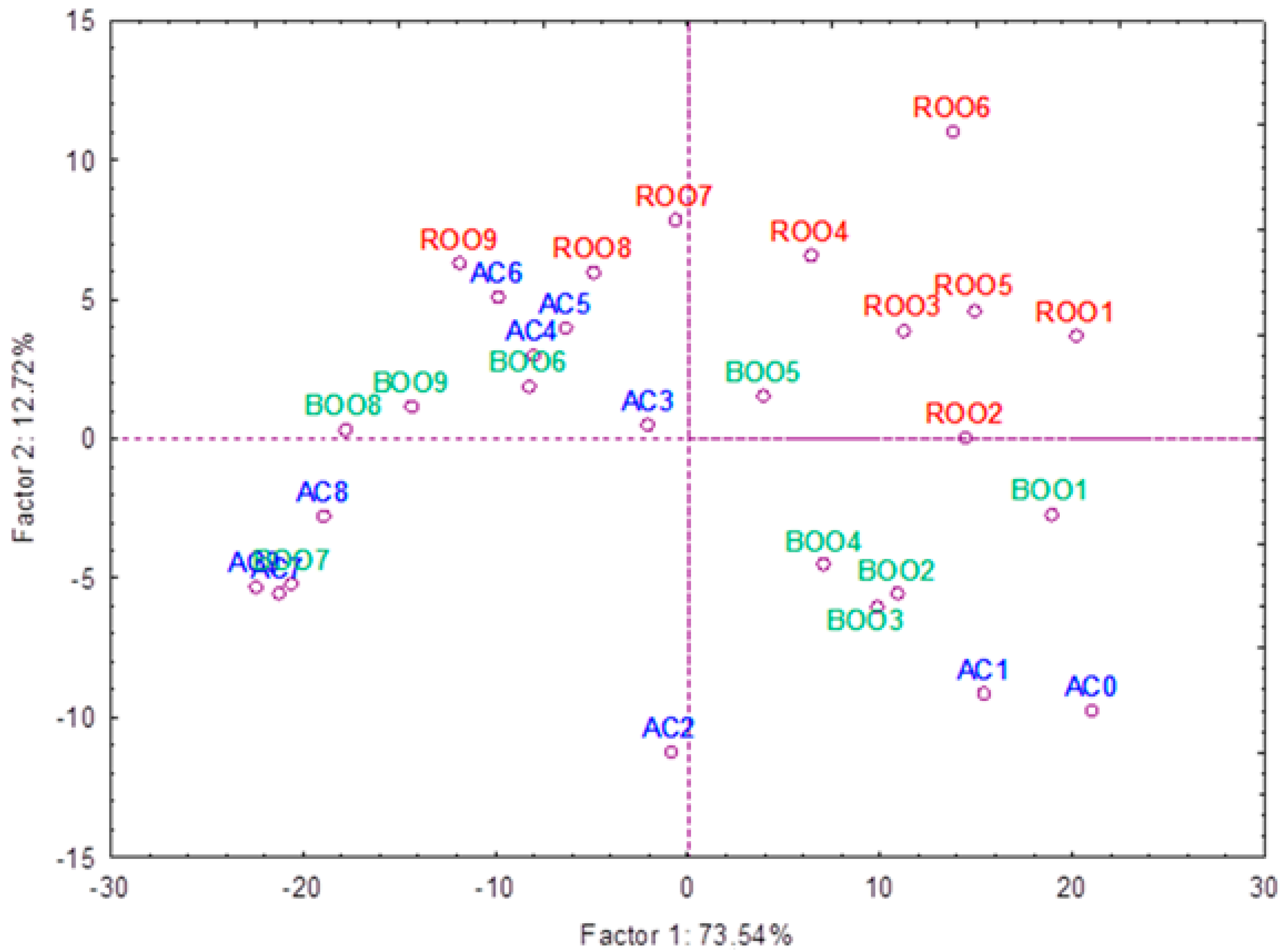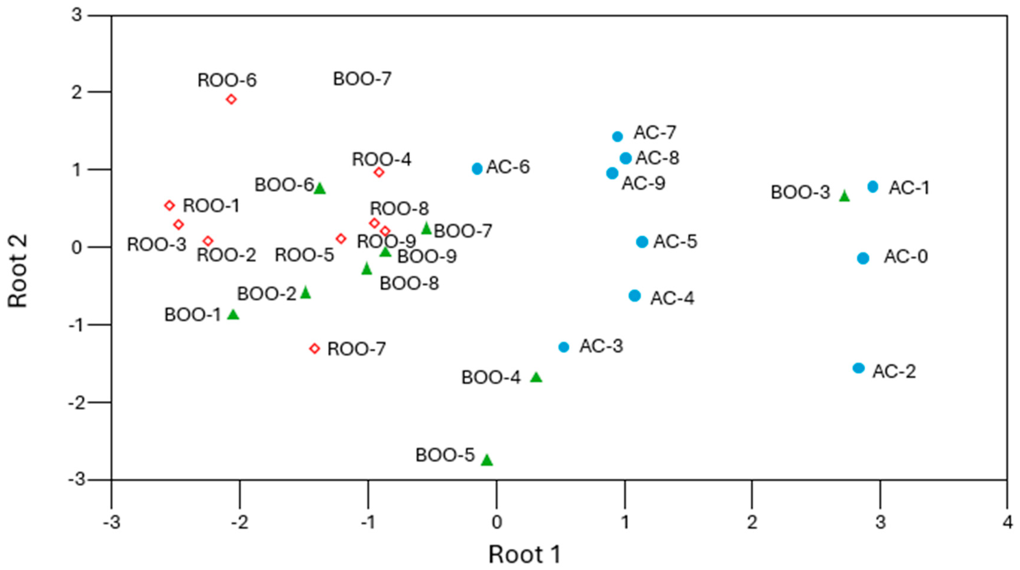3.1. Characterization of Virgin Olive Oil Samples