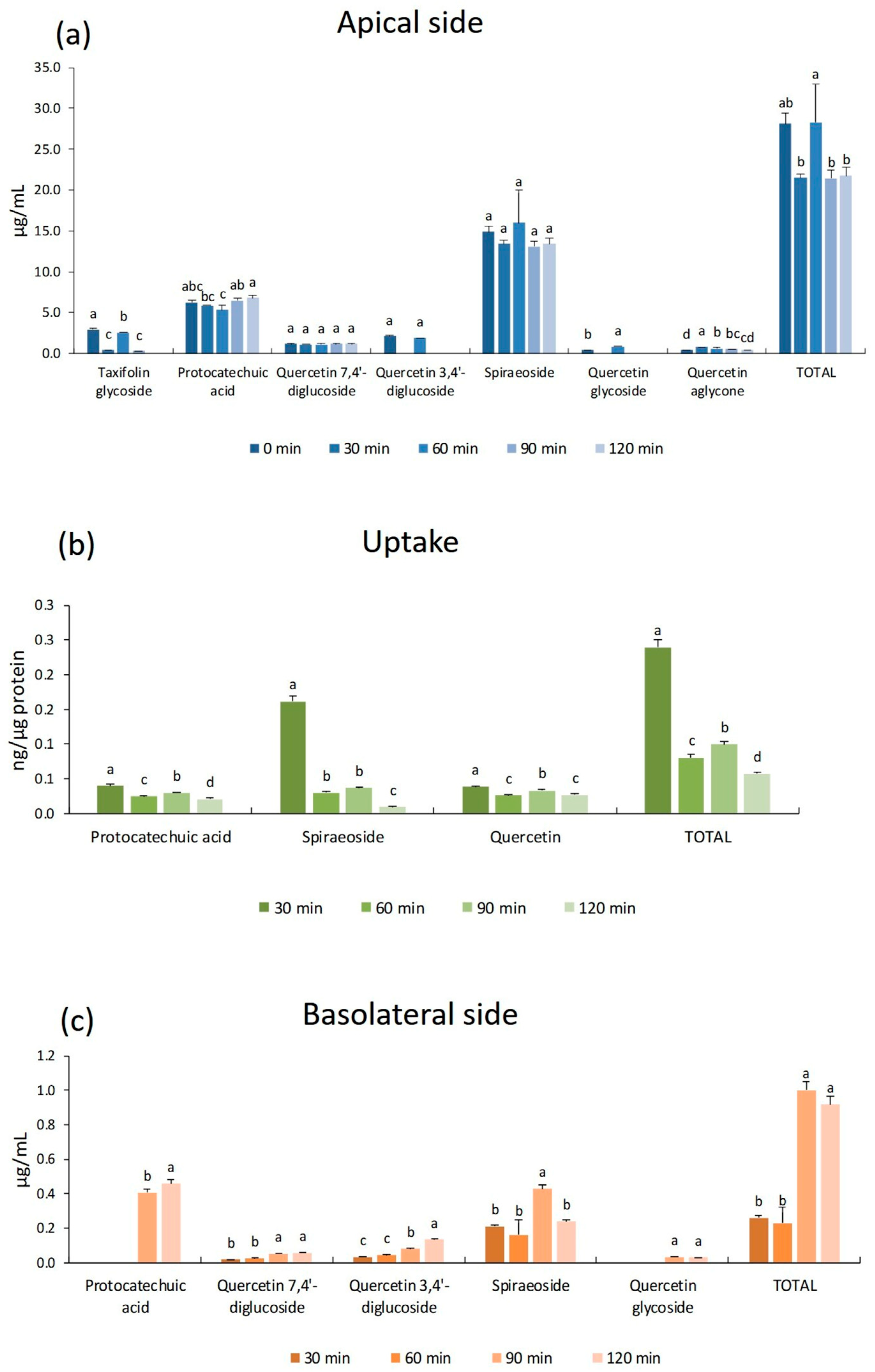 2.3.3. Bioavailability and Uptake of Polyphenols by Caco-2 Cells