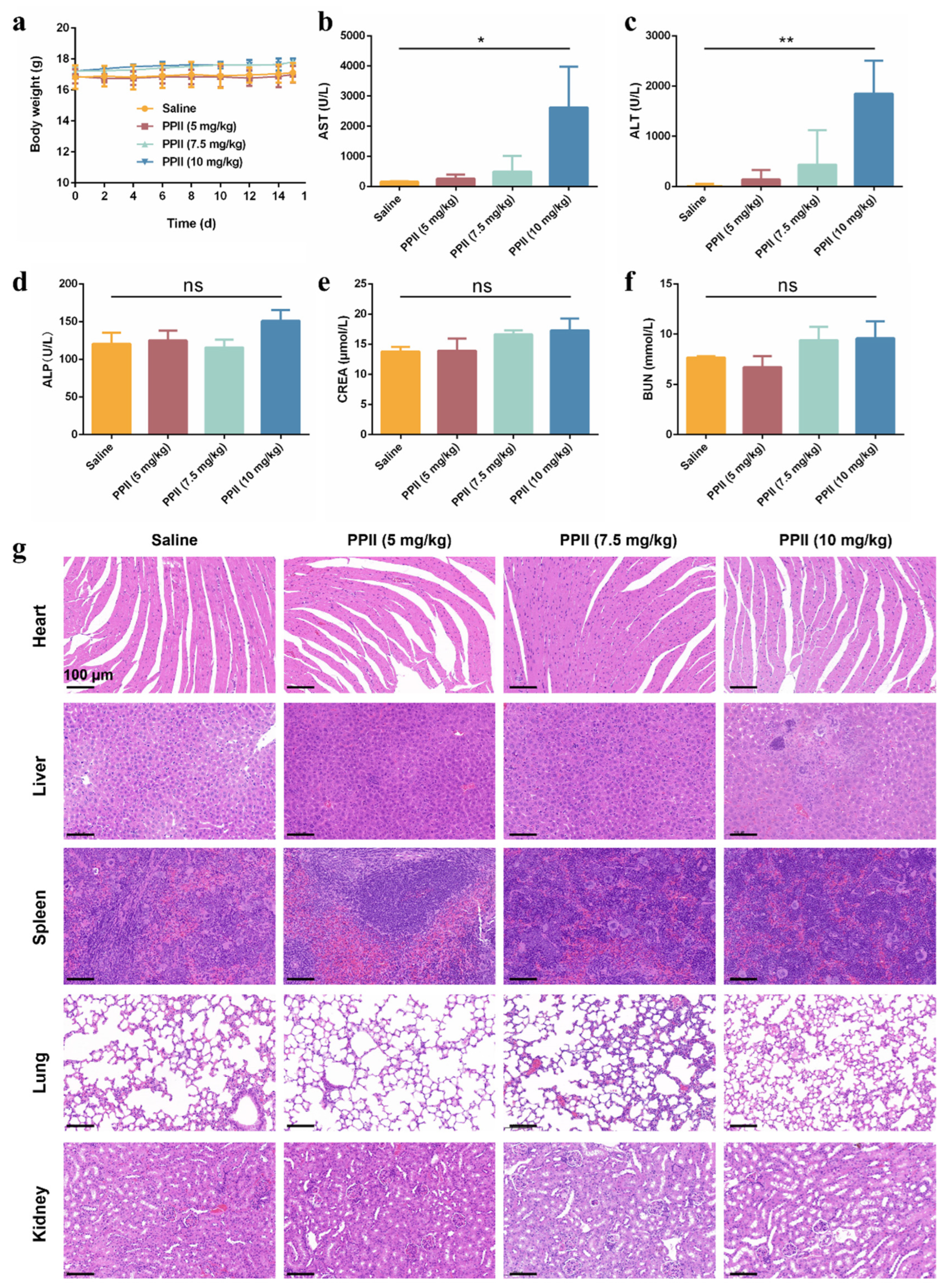 3.6. The In Vivo Biosafety of PPII