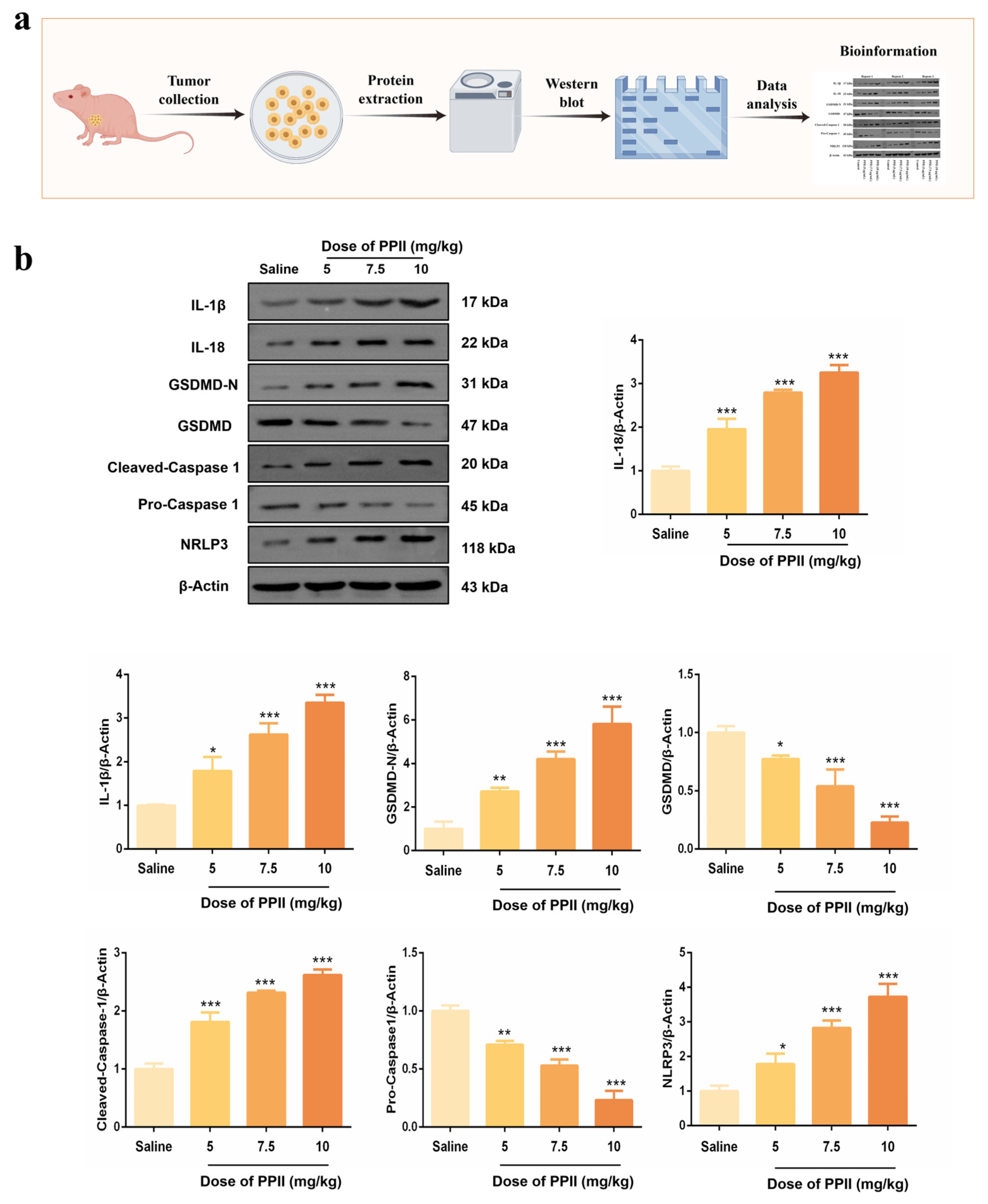 3.7. PPII Induced NLRP3/Caspase-1/GSDMD-Mediated Pyroptosis