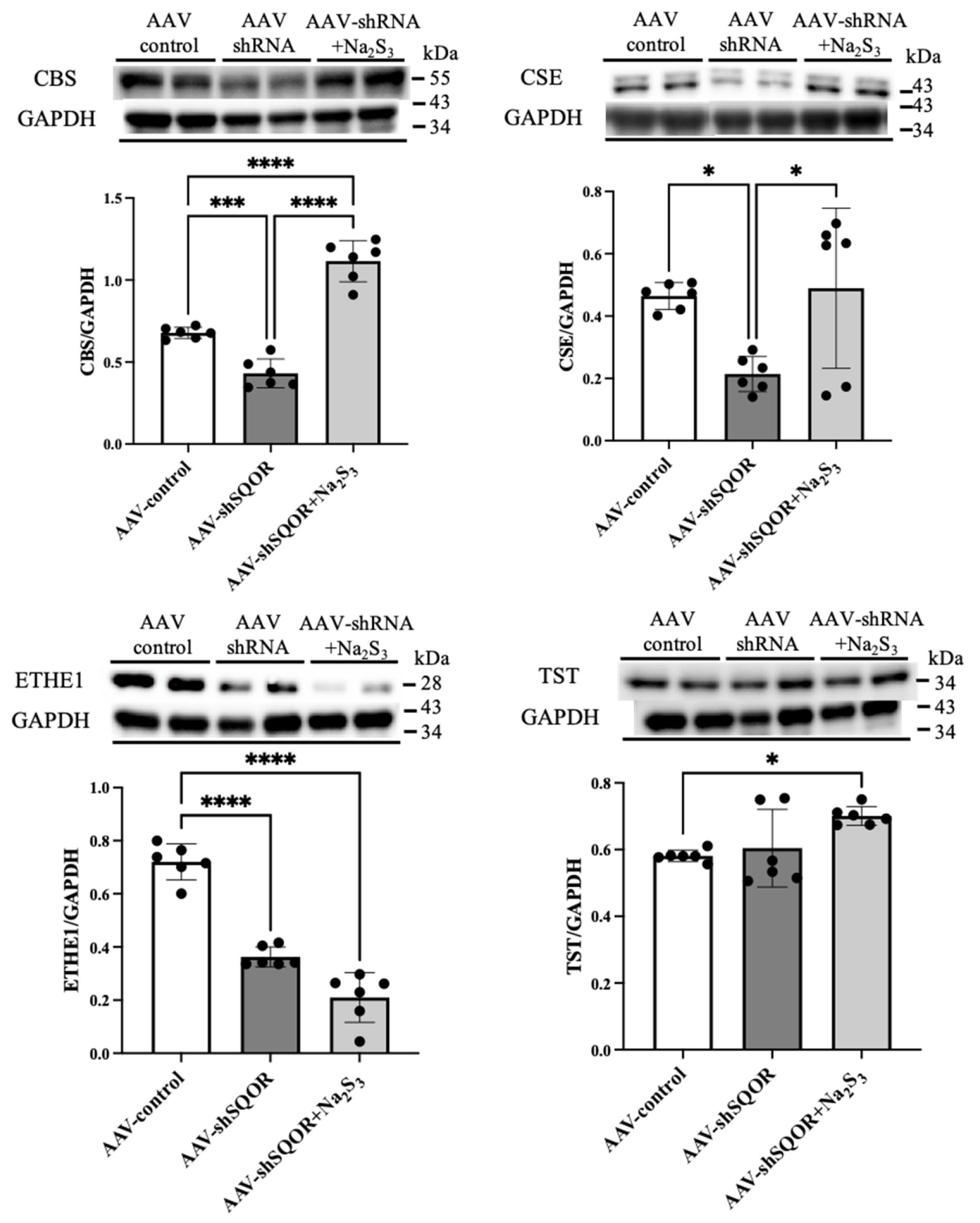 3.5. Levels of CBS, CSE, ETHE1, and TST in Hepatic IRI Under SQOR Knockdown and Na2S3 Administration