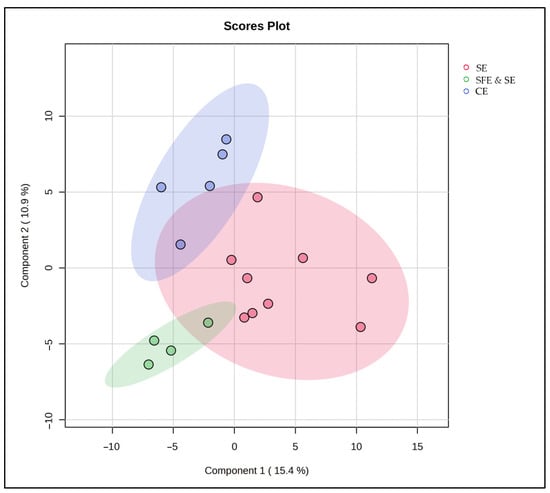 PLS-DA score plot for the comparison between SE, SFE and SE, and CE classes.