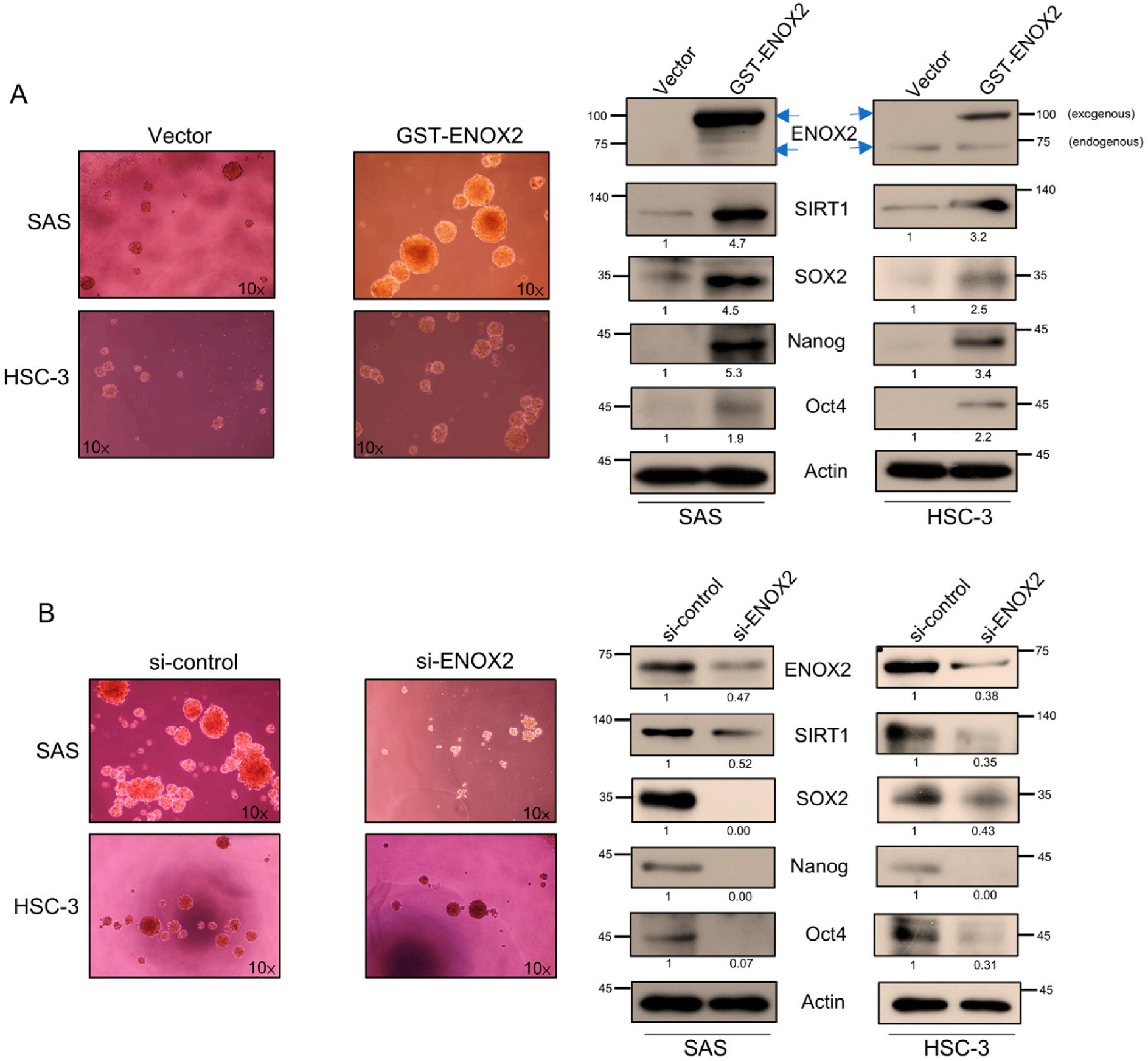 3.4. ENOX2 Regulates Sphere Formation and Stemness in Oral Cancer Cells