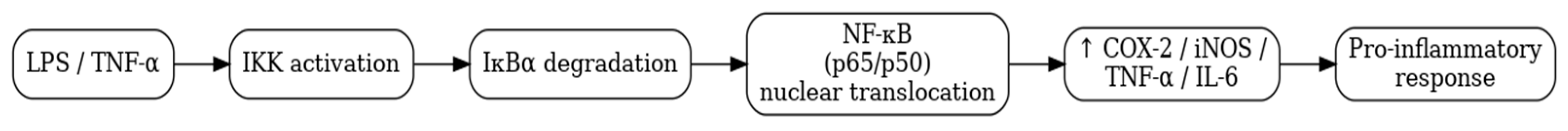 - Kumar, R.P.; Abraham, A. Inhibition of LPS induced pro-inflammatory responses in RAW 264.7 macrophage cells by PVP-coated naringenin nanoparticle via down regulation of NF-κB/P38MAPK mediated stress signaling. Pharmacol. Rep. 2017, 69, 908–915. [Google Scholar] [CrossRef]