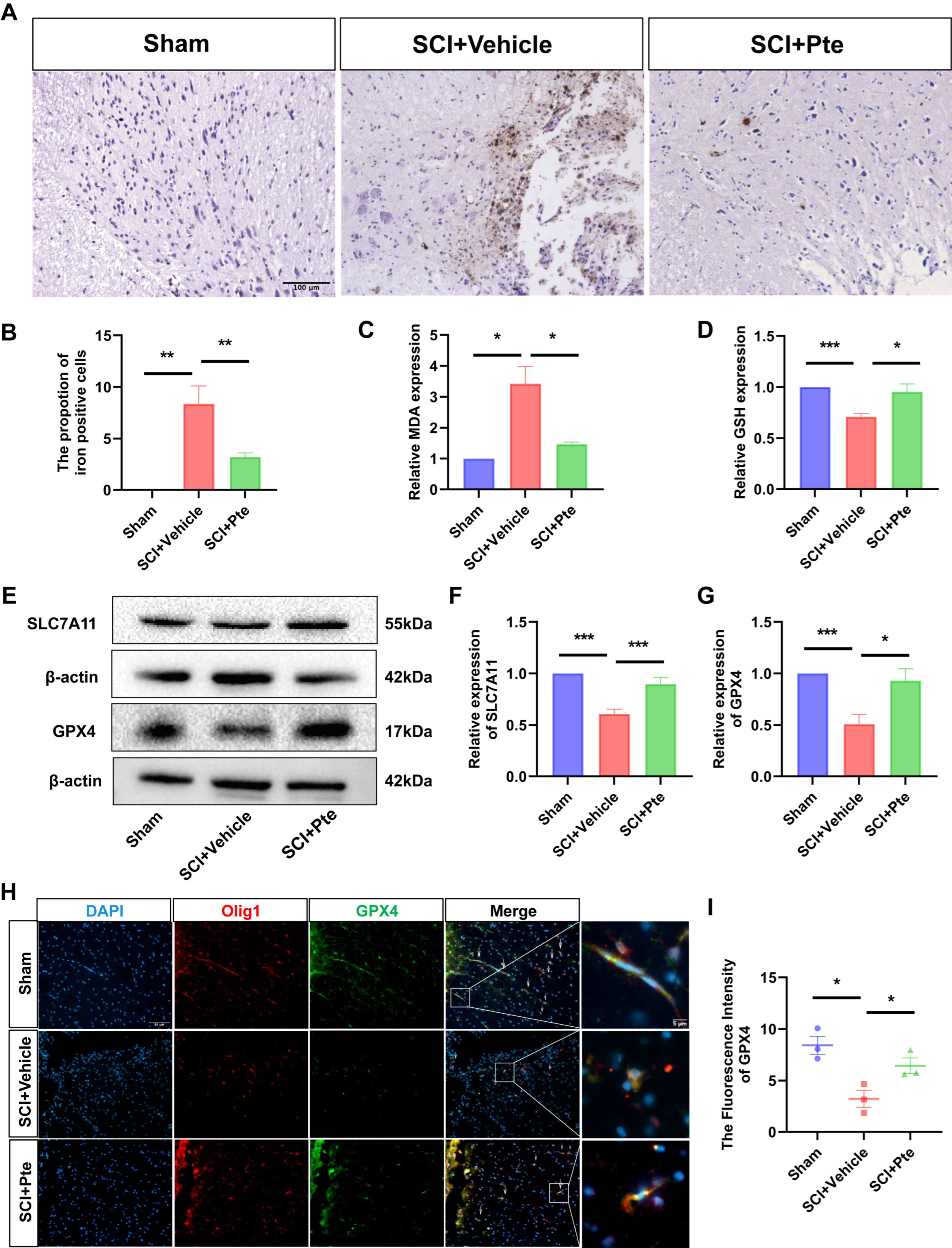 3.3. Pte Protects Spinal Cord Tissue by Suppressing Ferroptosis