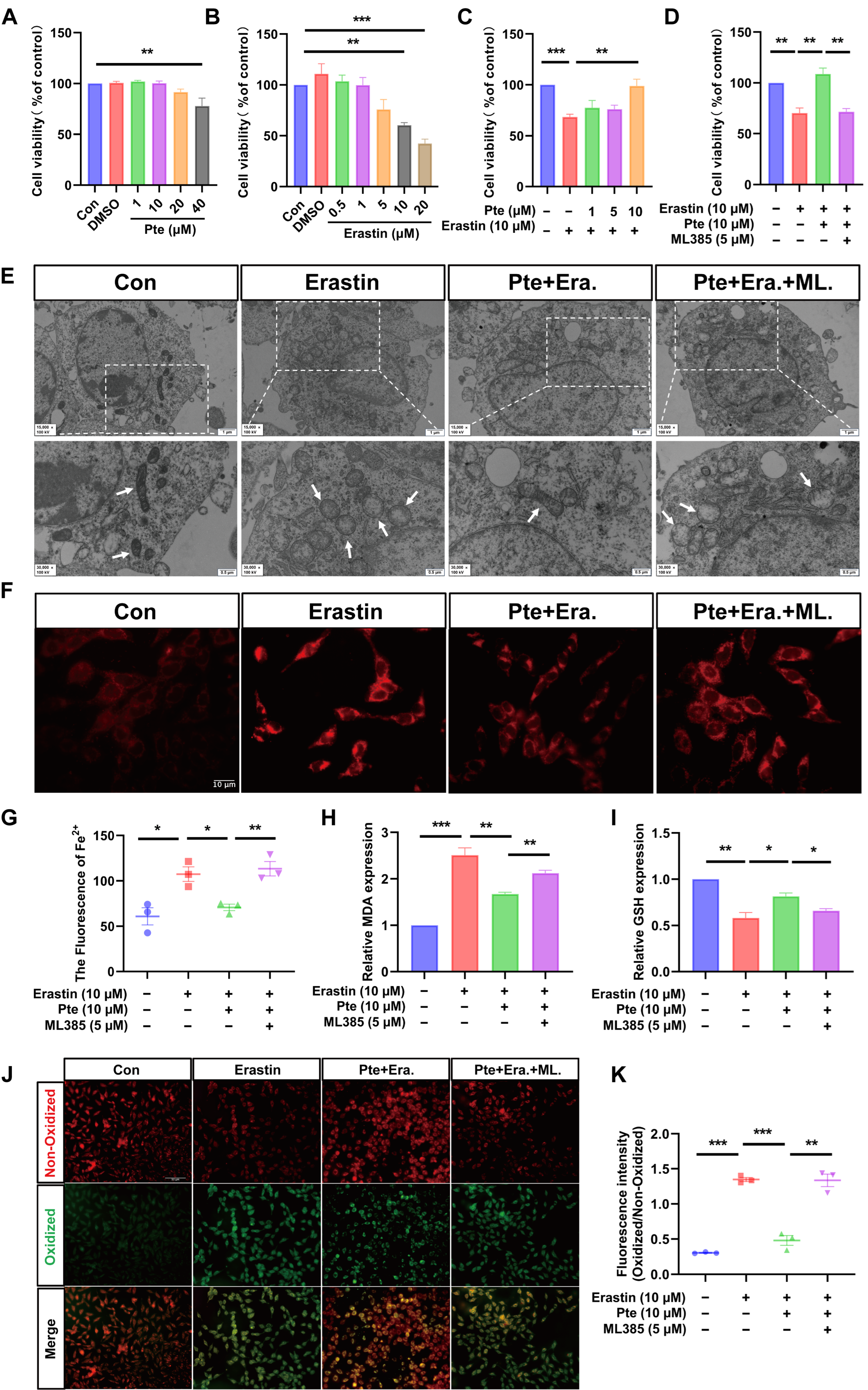3.5. Pte Inhibits Erastin-Induced Oligodendroglial Cell Ferroptosis