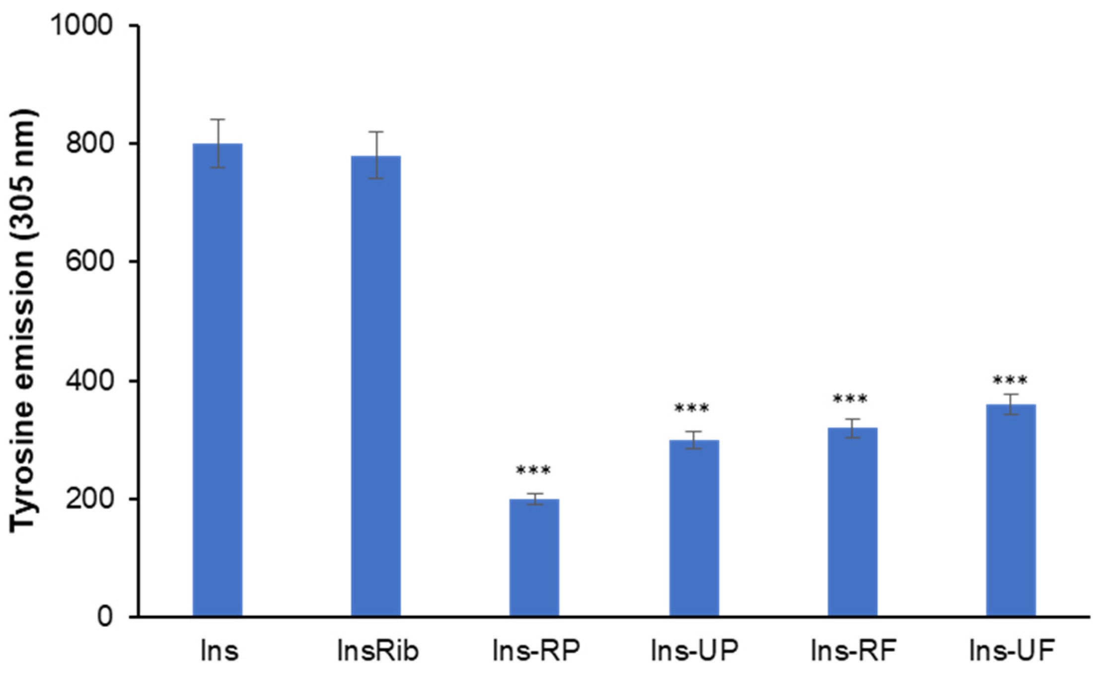 - Oliveira, L.M.A.; Lages, A.; Gomes, R.A.; Neves, H.; Família, C.; Coelho, A.V.; Quintas, A. Insulin Glycation by Methylglyoxal Results in Native-like Aggregation and Inhibition of Fibril Formation. BMC Biochem. 2011, 12, 41. [Google Scholar] [CrossRef] [PubMed]