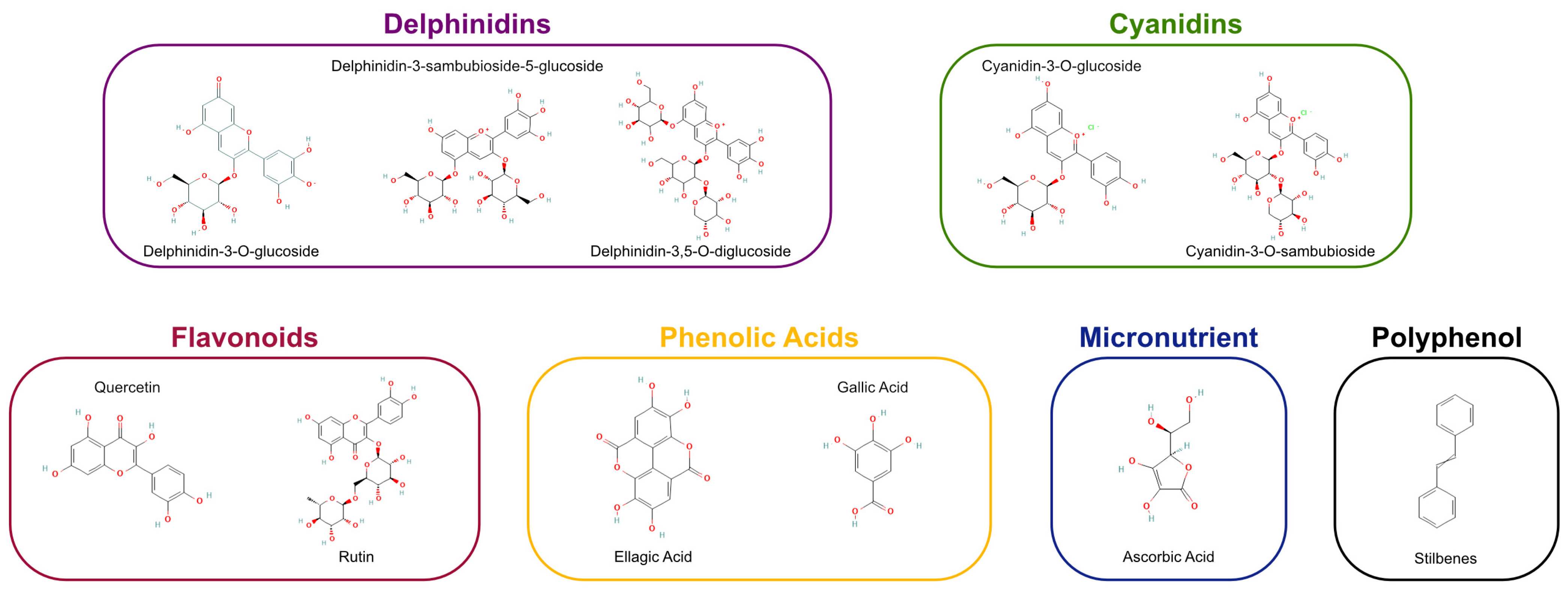 97]. Studies have shown that high temperatures, prolonged heating, and exposure to light can degrade anthocyanins and reduce antioxidant capacity, necessitating optimized processing conditions such as mild thermal treatments, microencapsulation technologies, and the use of stabilizing carriers [