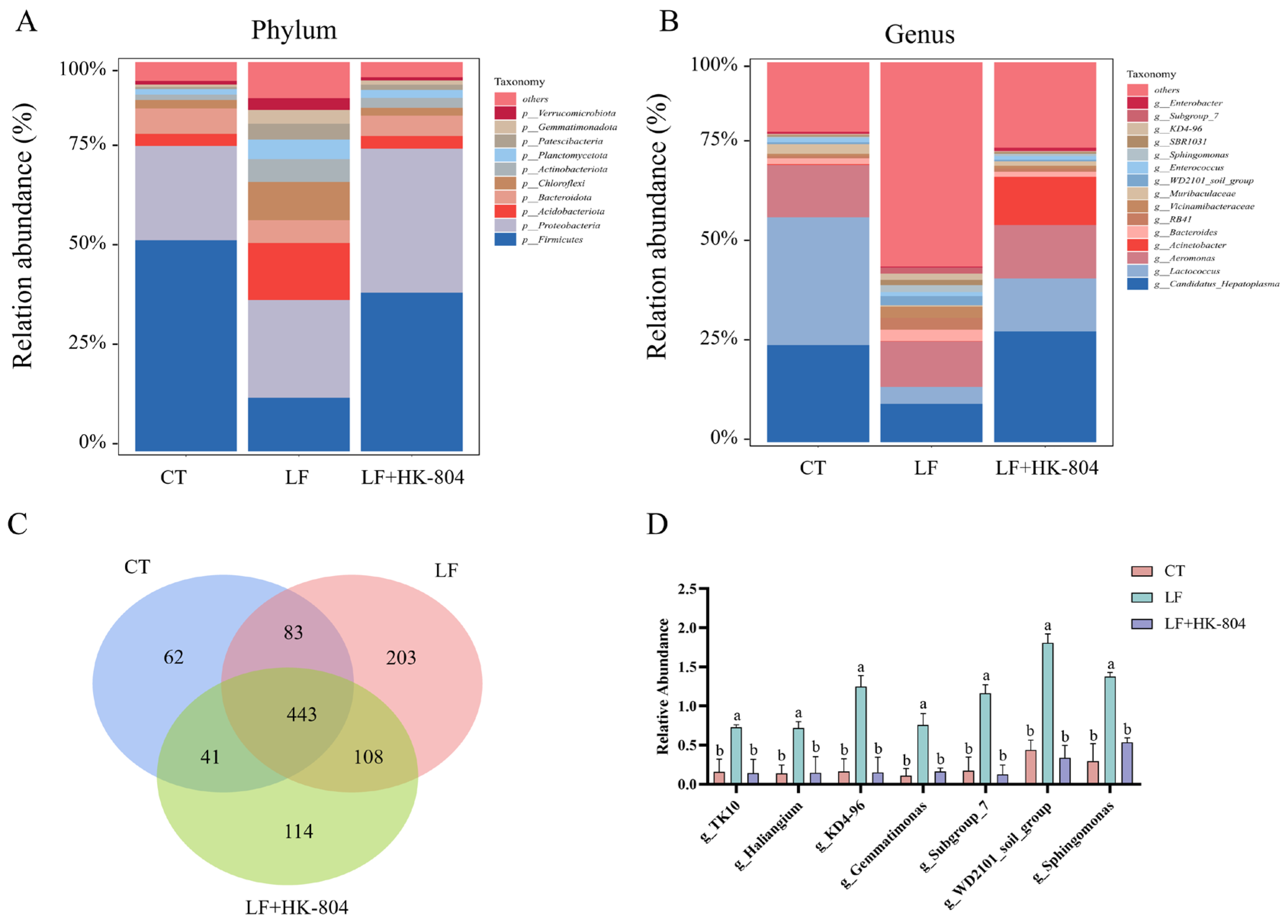 | Ingredients | CT | LF | LF+HK-448 | LF+HK-798 | LF+HK-804 |