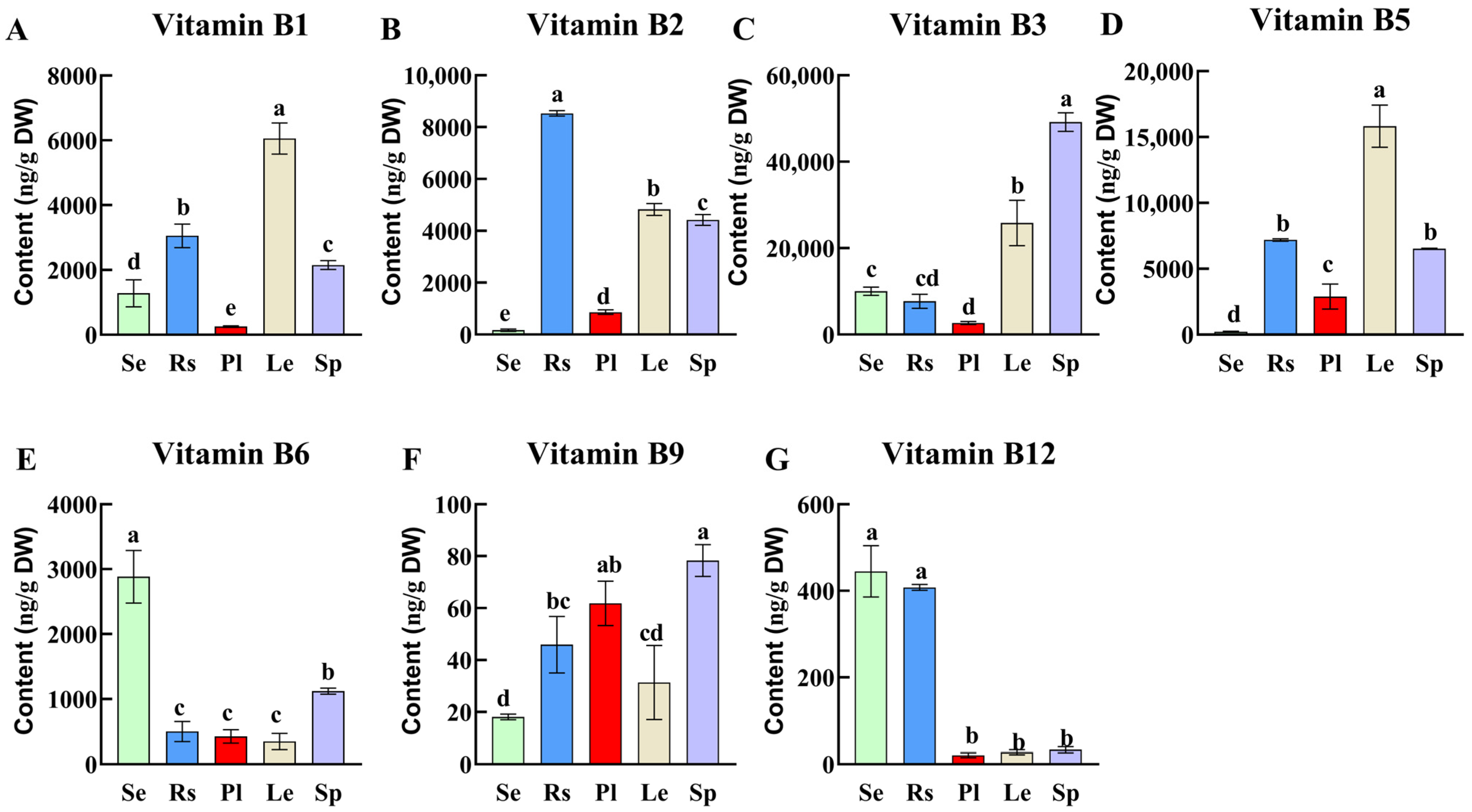 3.4. Tissue-Specific Accumulation of B Vitamin in Different Oilseed Crops