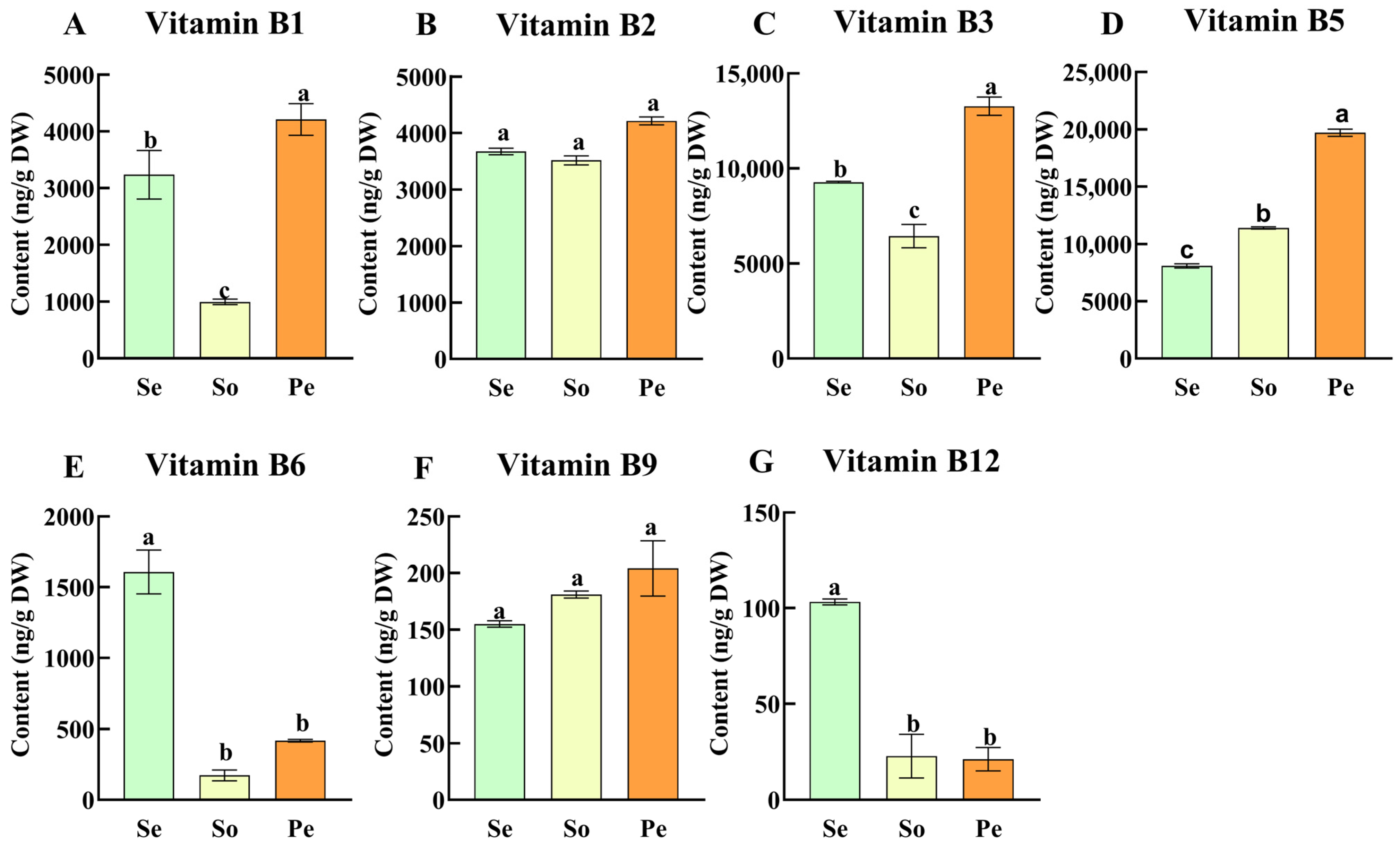 Comparative Study of B Vitamins in Multiple Tissues of Oilseed Crops and Leafty Vegetables Reveal Sesame as a Valuable Resource in Vitamin B3, B6 and B12