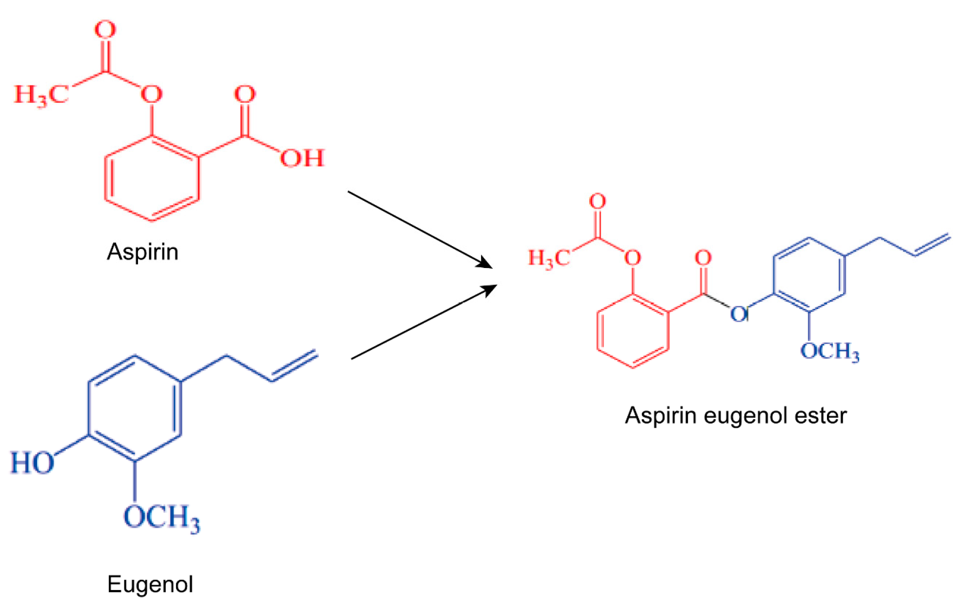 - Li, J.; Yu, Y.; Wang, Q.; Zhang, J.; Yang, Y.; Li, B.; Zhou, X.; Niu, J.; Wei, X.; Liu, X.; et al. Synthesis of Aspirin Eugenol Ester and Its Biological Activity. Med. Chem. Res. 2012, 21, 995–999. [Google Scholar] [CrossRef]